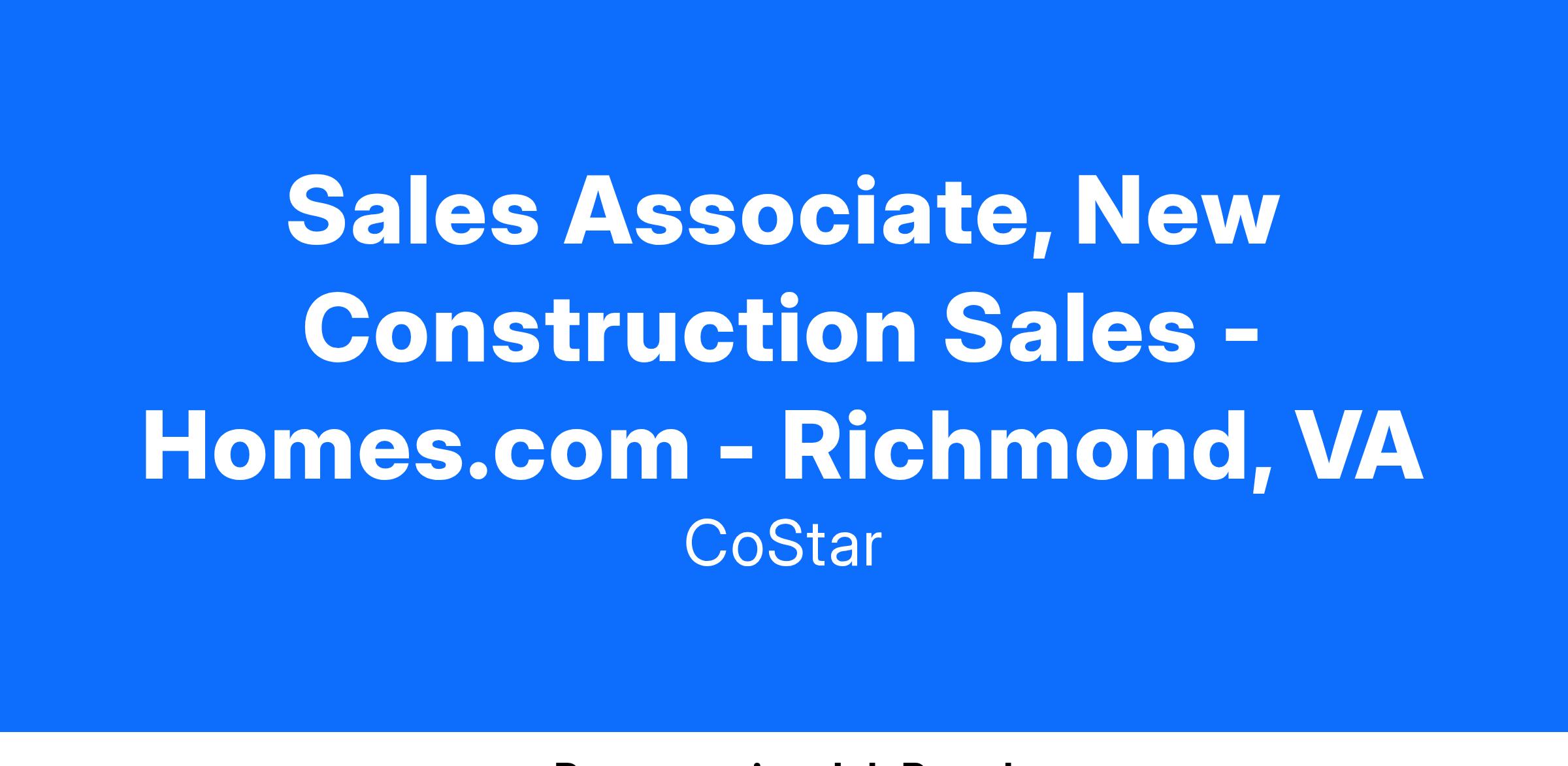 CoStar Group is an Equal Employment Opportunity Employer; we maintain a drug-free workplace and perform pre-employment substance abuse testing