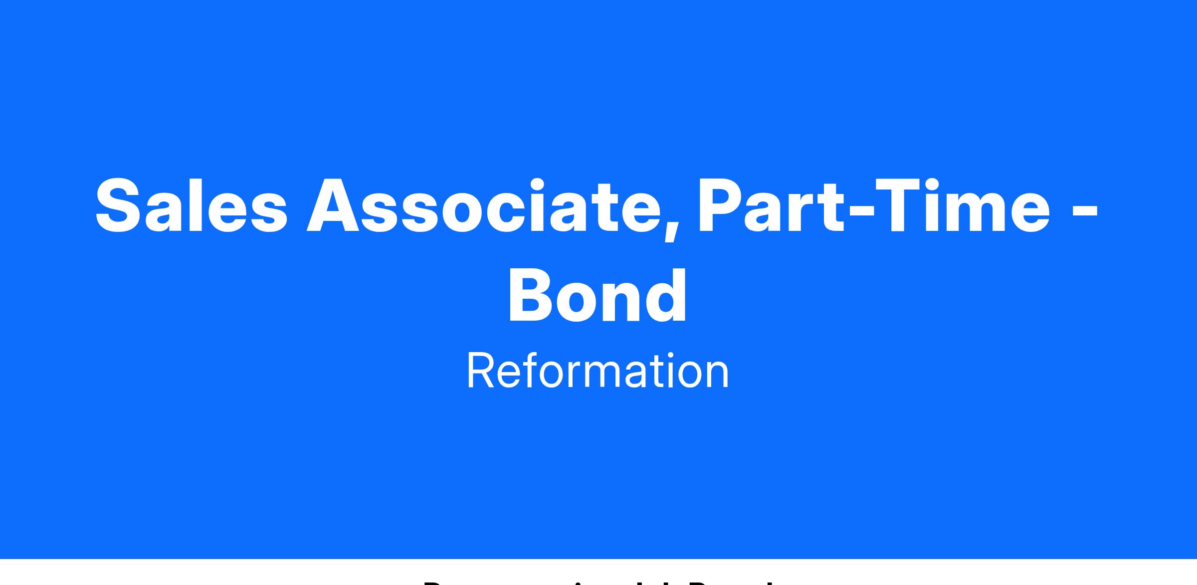 No position at Reformation is about the status quo, every team member is passionate about building a company rooted in excellence. Obsessed with customers and sustainability we use tech to create a unique interaction between our customers, employees, and the Reformation brand. The Associate will execute all efforts required to achieve individual sales goals.