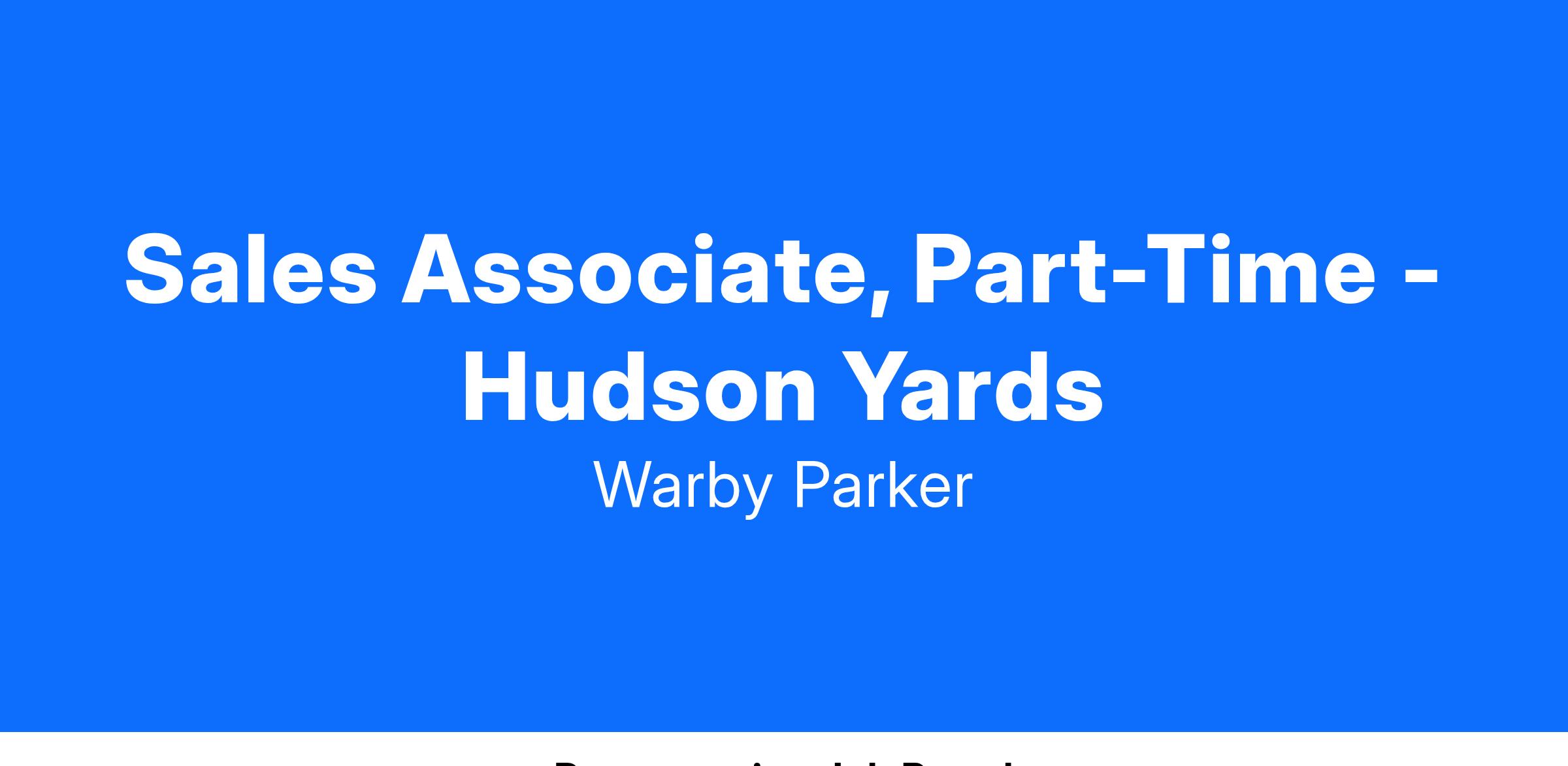 Warby Parker is searching for a well-rounded Sales Advisor to help us deliver the best possible service to each and every one of our customers. (At other brands, you might see similar roles called Sales Associate.) In supporting our retail locations across the country (and Canada!), Advisors have a direct, immediate impact on the success of Warby Parker through customer interactions, process ideation and improvement, and various special projects. We've grown to who we are today thanks in no small part to them! In this role, you'll get to show folks firsthand what Warby Parker is all about while making glasses shopping a goosebump-inducing experience. Sound cool? Read on!