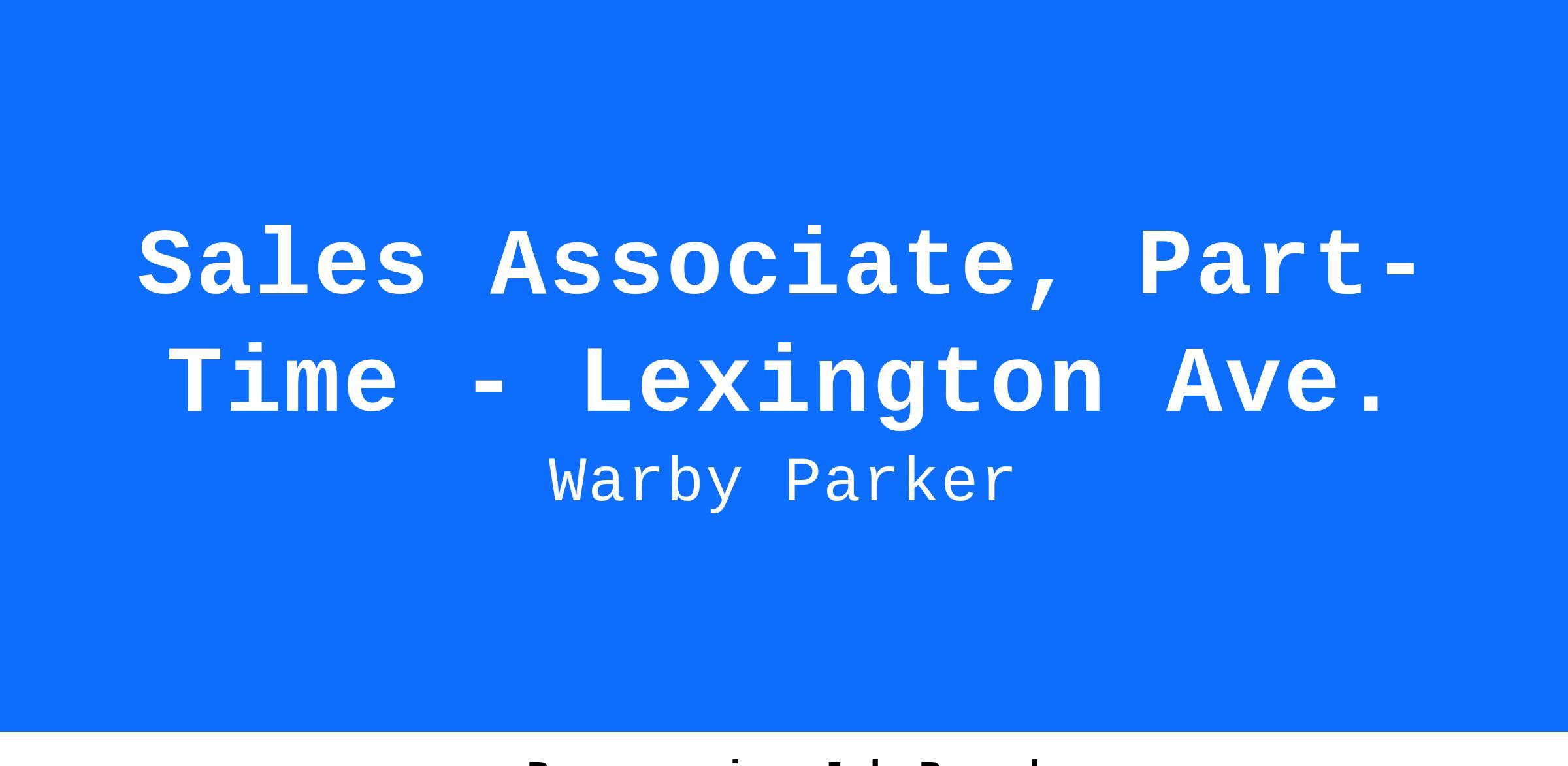 Sales Associate, Part-Time - Lexington Ave.