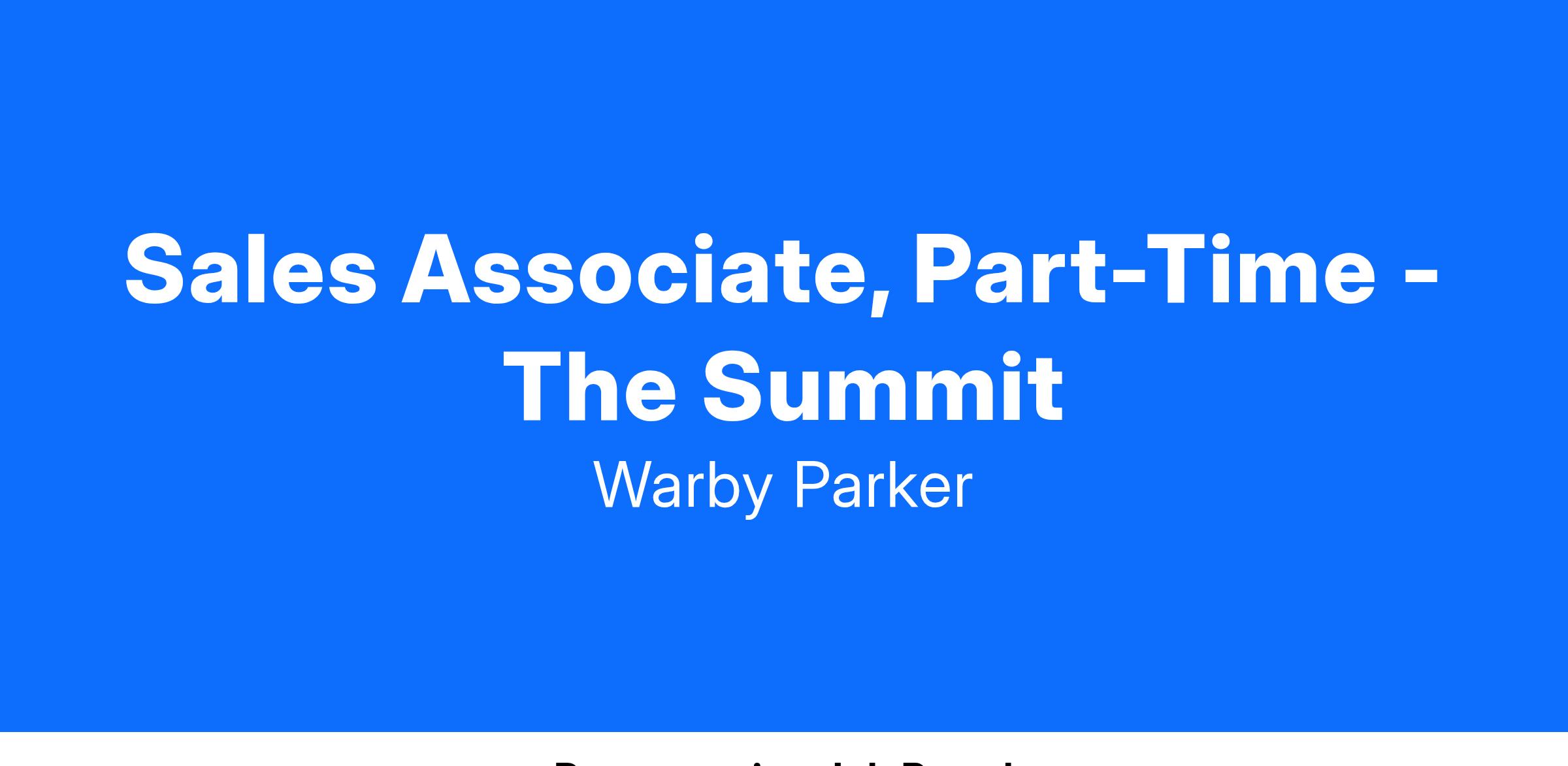 Warby Parker is searching for a well-rounded Sales Advisor to help us deliver the best possible service to each and every one of our customers. (At other brands, you might see similar roles called Sales Associate.) In supporting our retail locations across the country (and Canada!), Advisors have a direct, immediate impact on the success of Warby Parker through customer interactions, process ideation and improvement, and various special projects. We've grown to who we are today thanks in no small part to them! In this role, you'll get to show folks firsthand what Warby Parker is all about while making glasses shopping a goosebump-inducing experience. Sound cool? Read on!