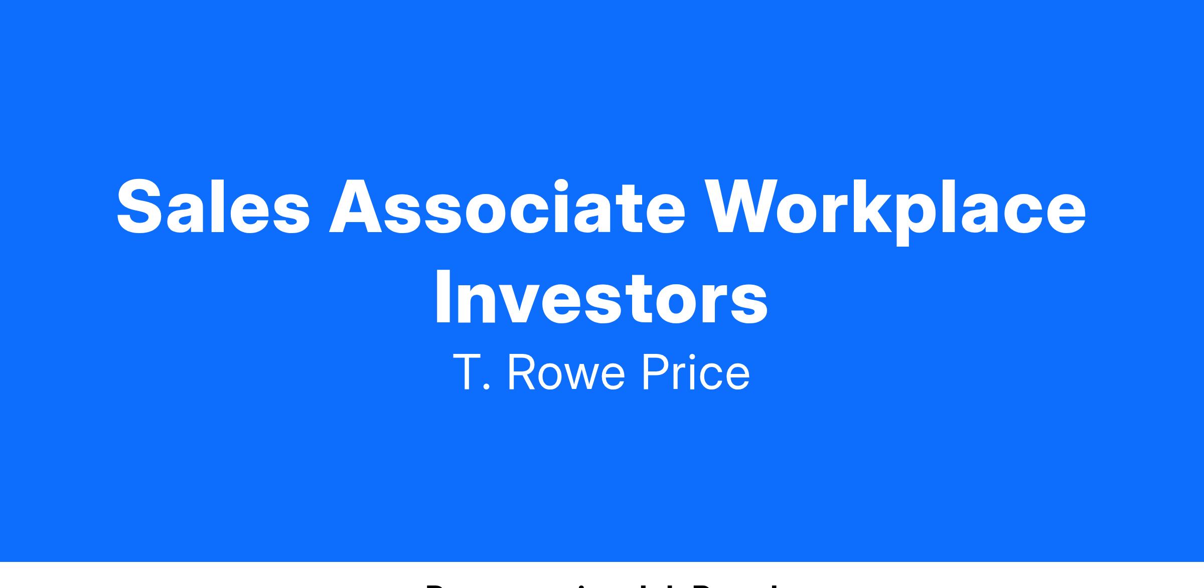 There is a place for you at T. Rowe Price to grow, contribute, learn, and make a difference. We are a premier asset manager focused on delivering global investment management excellence and retirement services that investors can rely on today and in the future. The work we do matters. We invite you to explore the opportunity to join us and grow your career with us.