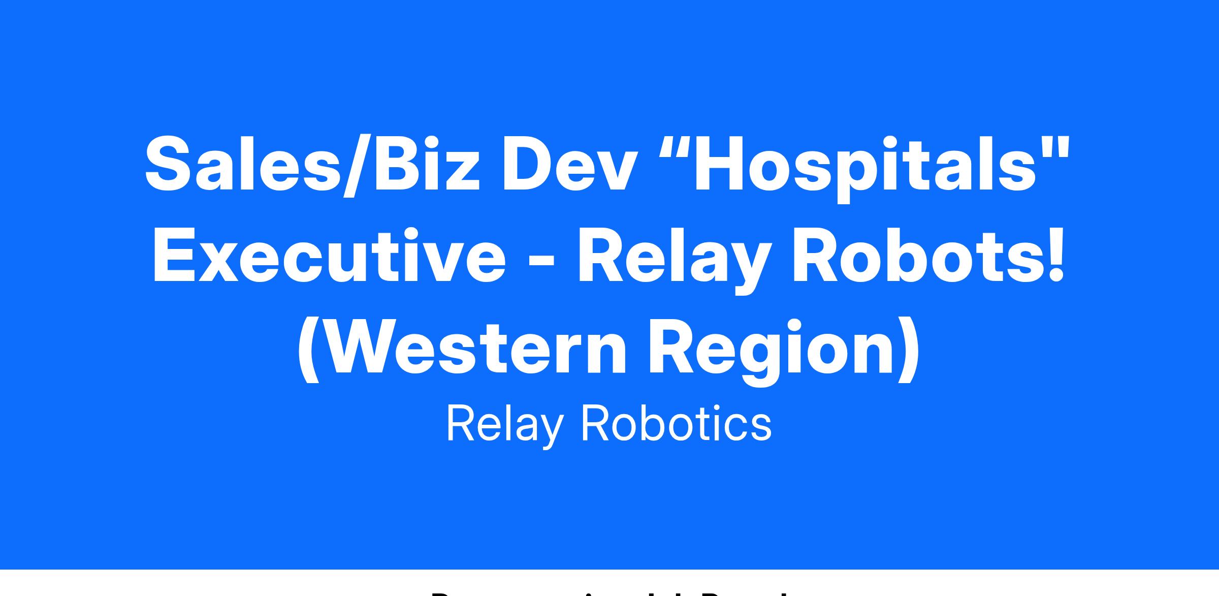 We seek a dynamic Sales/Biz Dev Representative, especially experienced in the Hospital/Healthcare sector, to drive sales growth. If you're passionate about innovation, client success, and achieving goals, we invite you to join our team. He or she must be motivated by a passion for Relay Robotics products and services, our clients’ success, achieving goals and driving deals. With a focus on hospitals the Sales Executive is responsible for helping grow the sales effort within Relay Robotics including prospect identification, evaluation, development, and deal making.