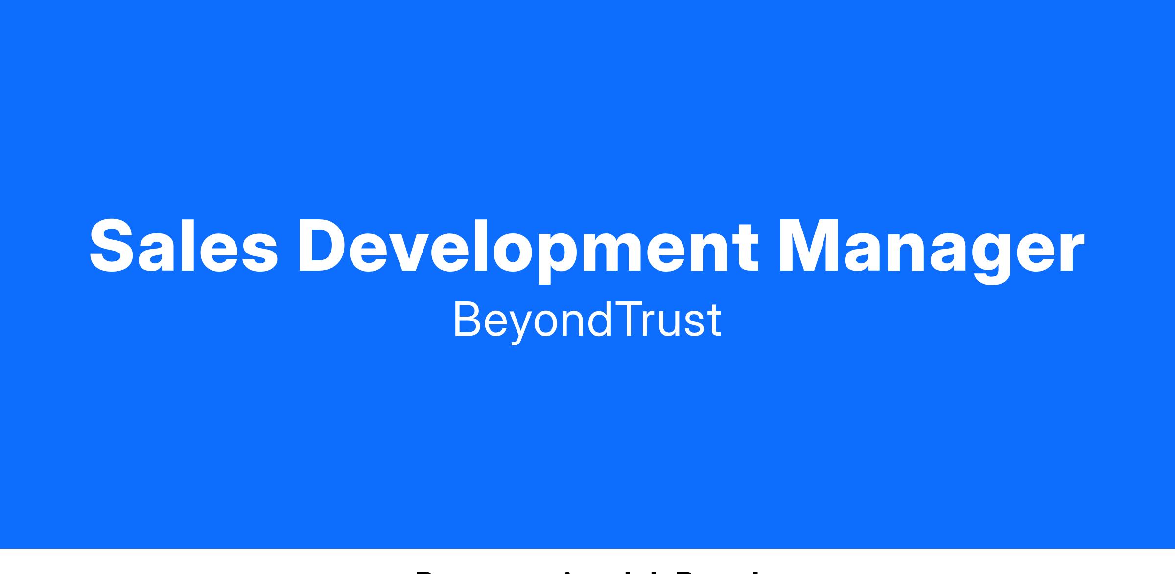 As a Sales Development Manager, you'll recruit, develop, motivate, and train a highly driven and enthusiastic team of SDRs. The Sales Development team is the first interaction with prospective BeyondTrust customers and is key to the success of BeyondTrust
