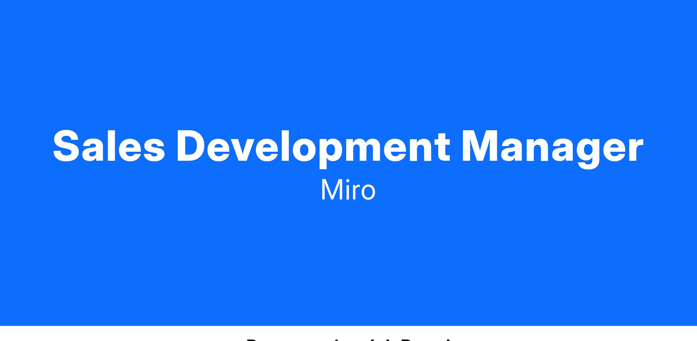 The Sales Development Manager drives the Outbound Sales Development Team towards pipeline generation goals, coaches Sales Development Representatives in prospecting efforts to engage with Commercial & Enterprise prospective customers, motivates and develops team members, and works closely with other senior leaders across the sales, marketing, and operations departments. This role will play a pivotal part in continuing to drive Miro’s expansion and rapid growth!