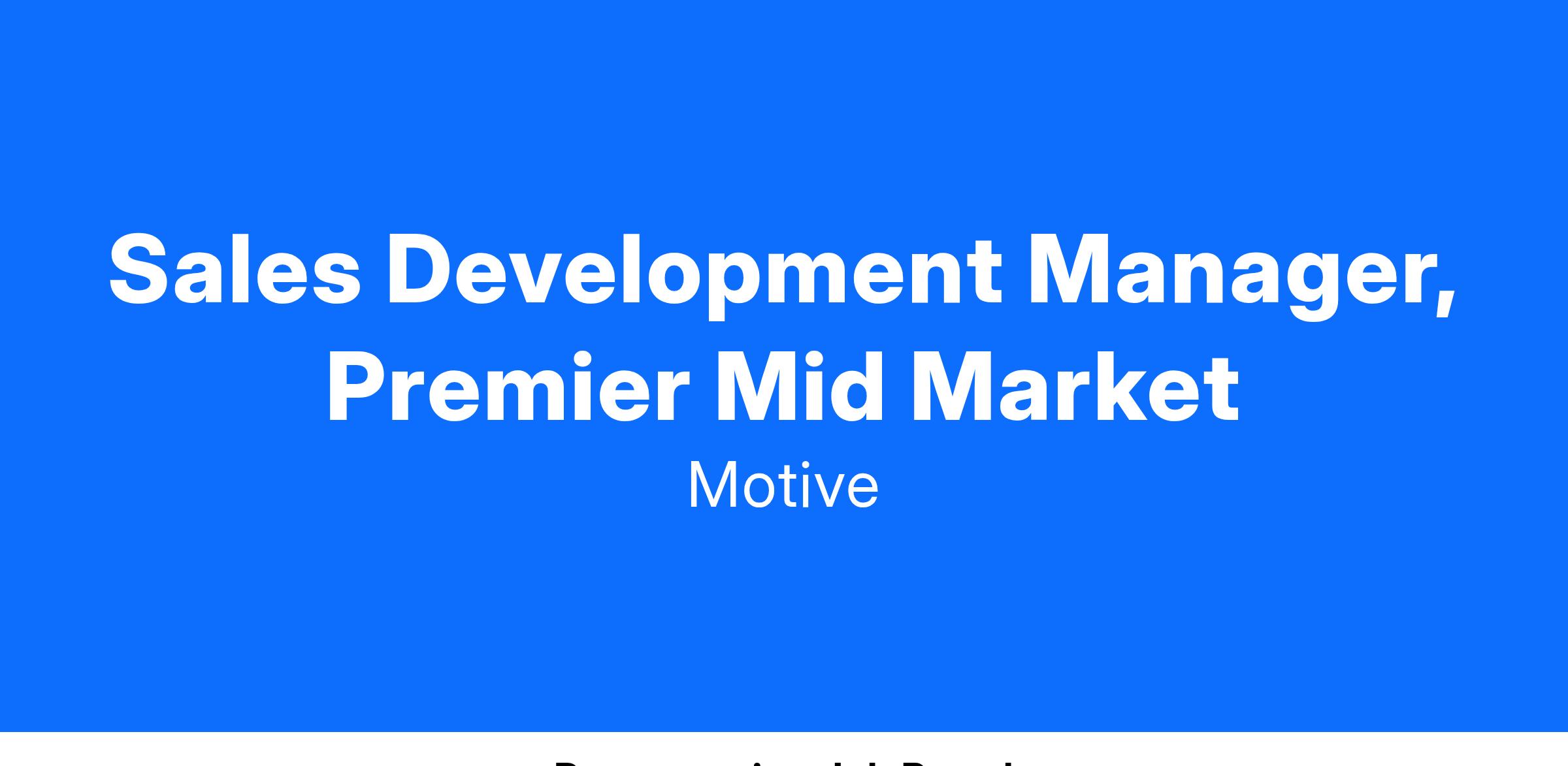 - 2+ years of high performing Sales Development Leadership experience and outperforming expectations (previous management experience a plus) is preferred