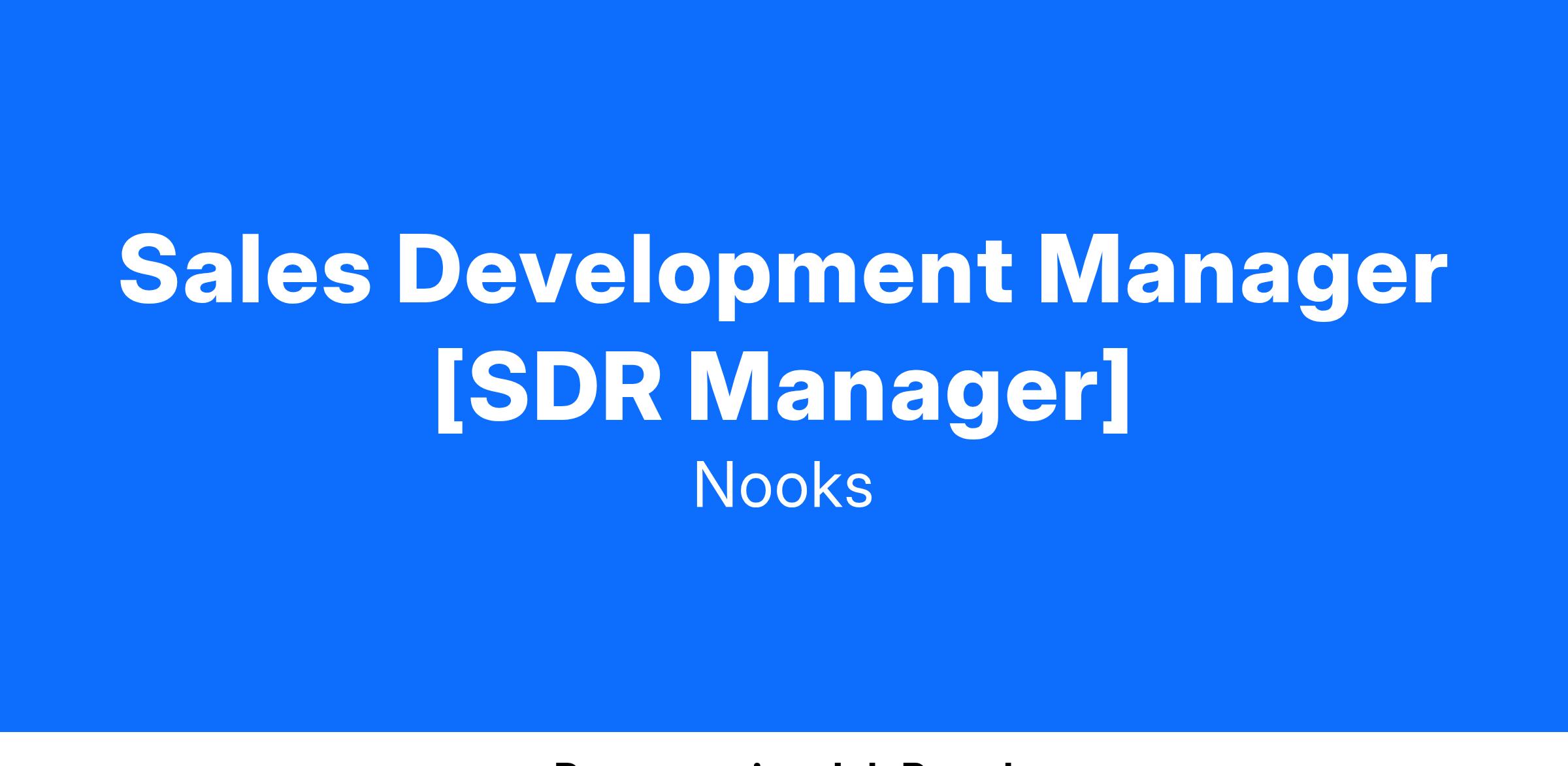 We’re looking for an experienced Sales Development Manager to lead one of our Mid-Market SDR teams! Reporting into the Head of Sales Development [Under Marketing], you bring 3+ years experience managing a high performing outbound SDR team, in a B2B SaaS org, you shouldn’t be afraid to pick up the phone and have experience building outbound messaging through all prospecting channels - phone, email + linkedin. Working closely with marketing + sales leadership, you’re experienced with hiring, coaching and motivating an outbound focused team to hit and exceed pipe gen targets, in a fast paced startup environment.