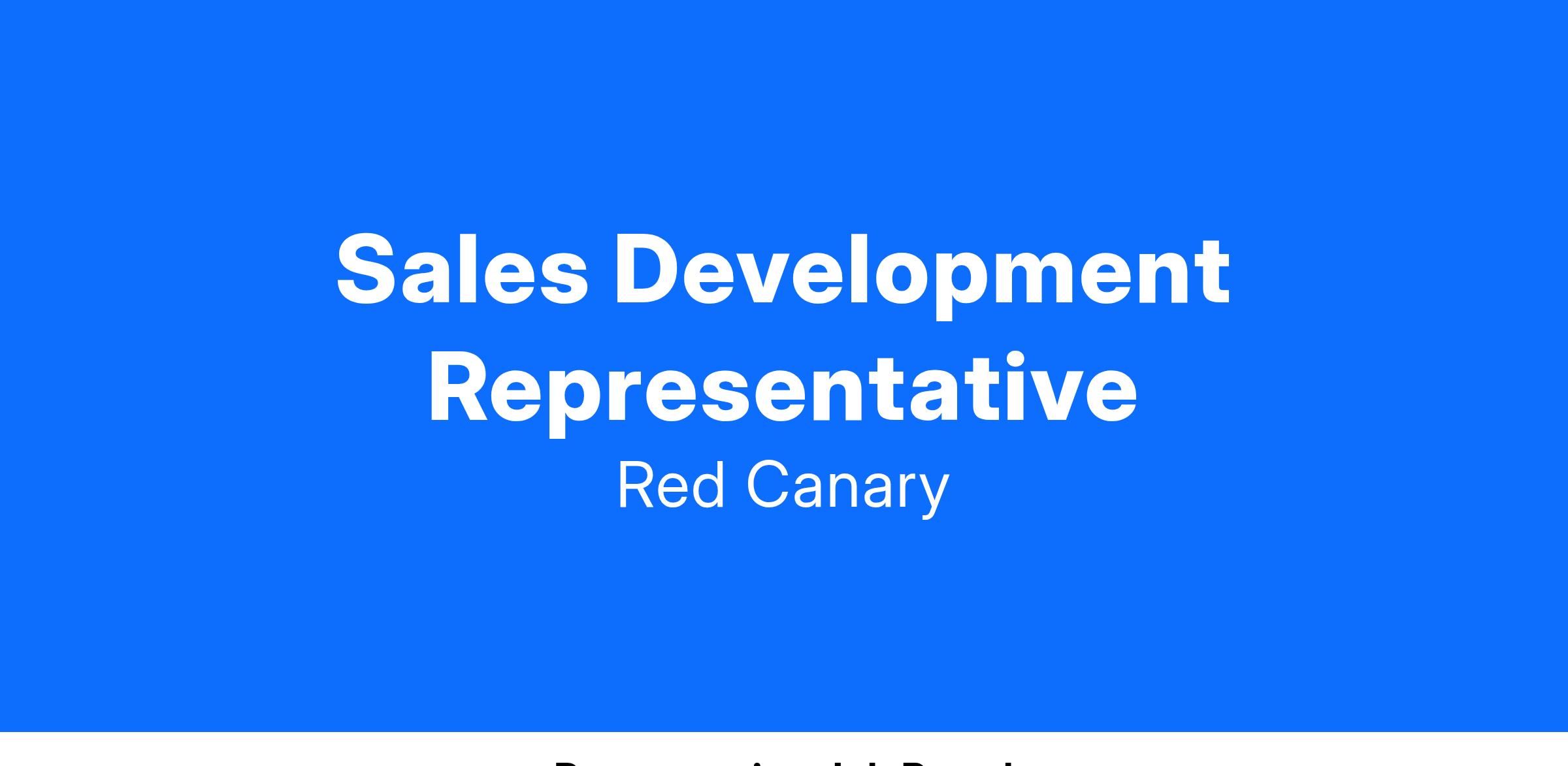 Sales Development Representatives work closely with our sales team to identify qualified prospects for Red Canary via outbound sources, and follow up on MQLs. Through your persistence, determination, and creativity, you will help accomplish Red Canaryβs mission to make security better for businesses of all sizes. You will prioritize bringing new prospects to Red Canary via cold outbounding.