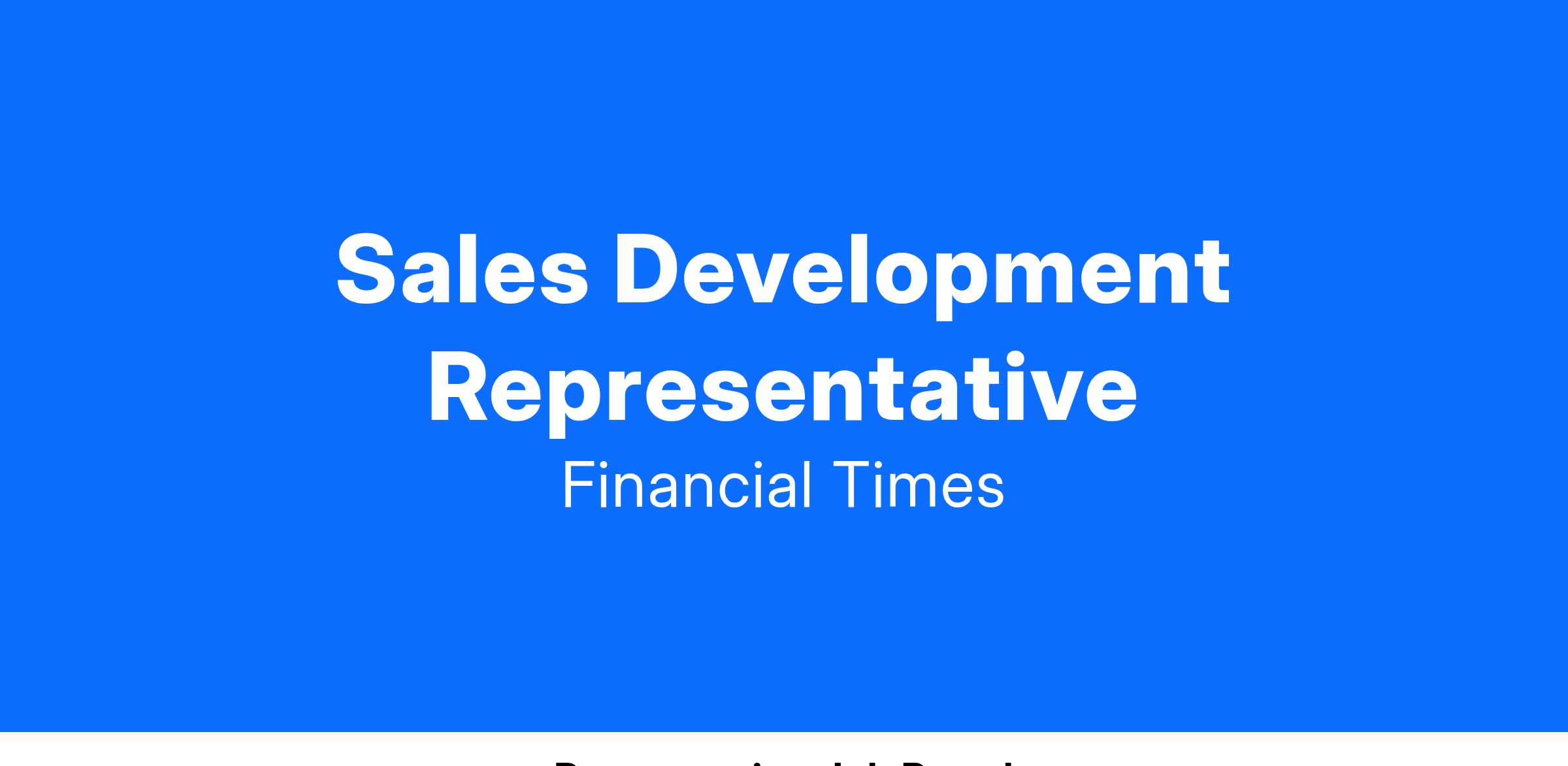 The Sales Development Representative will support both the FTβs Professional and Nikkei Asia sales teams and will be responsible for pre-qualifying leads and prospects for the field sales team to close into new business revenue. The role will support the field sales team through several activities which include: pre-qualification of leads/opportunities; identifying potential budget holders; proactive prospecting for new contacts, booking appointments with prospects and clients; and gathering testimonials/evidence for proposals, leveraging existing opportunities within the FT client base for Nikkei Asia. As such, SDRs must be comfortable making dozens of calls per day.