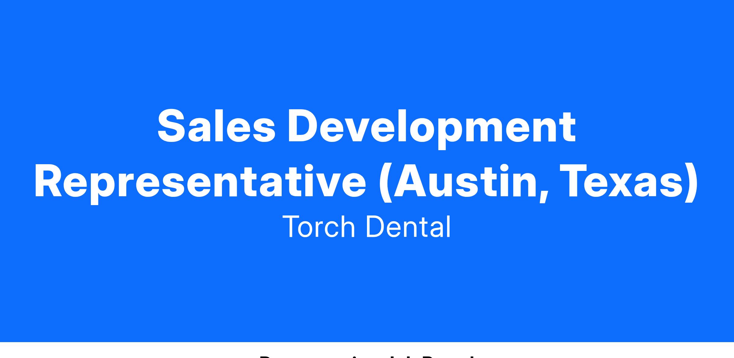 Our SDR training program will teach you sales fundamentals, dental industry content, and product knowledge to set you up for success. You will complete an immersive training program that includes classroom style training and a ramp period which will prepare you to speak with prospective Torch customers within the dental industry. Our team is excited to see you grow in your sales career and you will receive ongoing coaching and support during your time as a Torch SDR.