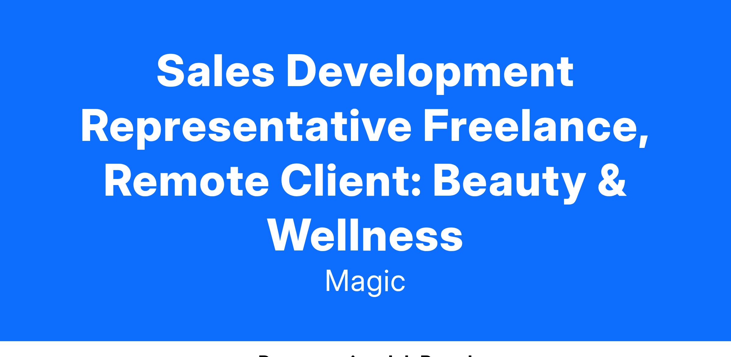 Sales Development Representative Freelance, Remote Client: Beauty & Wellness
