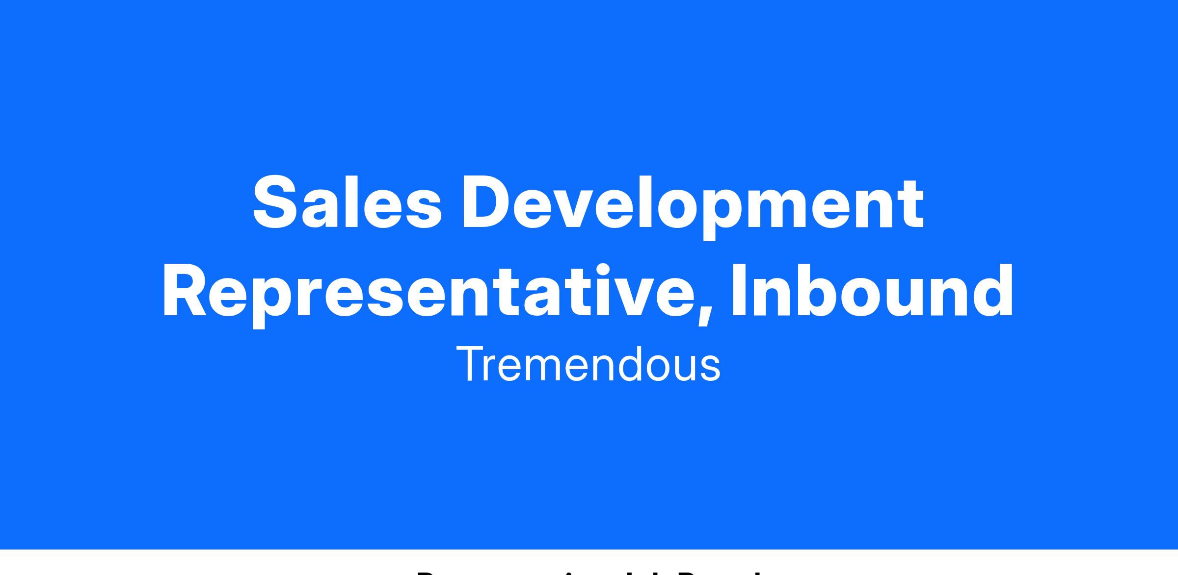 Your primary responsibility will be to nurture Inbound leads from various channels with the goal of generating qualified sales meetings for Account Executives. You will receive leads from a variety of inbound sources, and you will field questions from prospects about Tremendous.