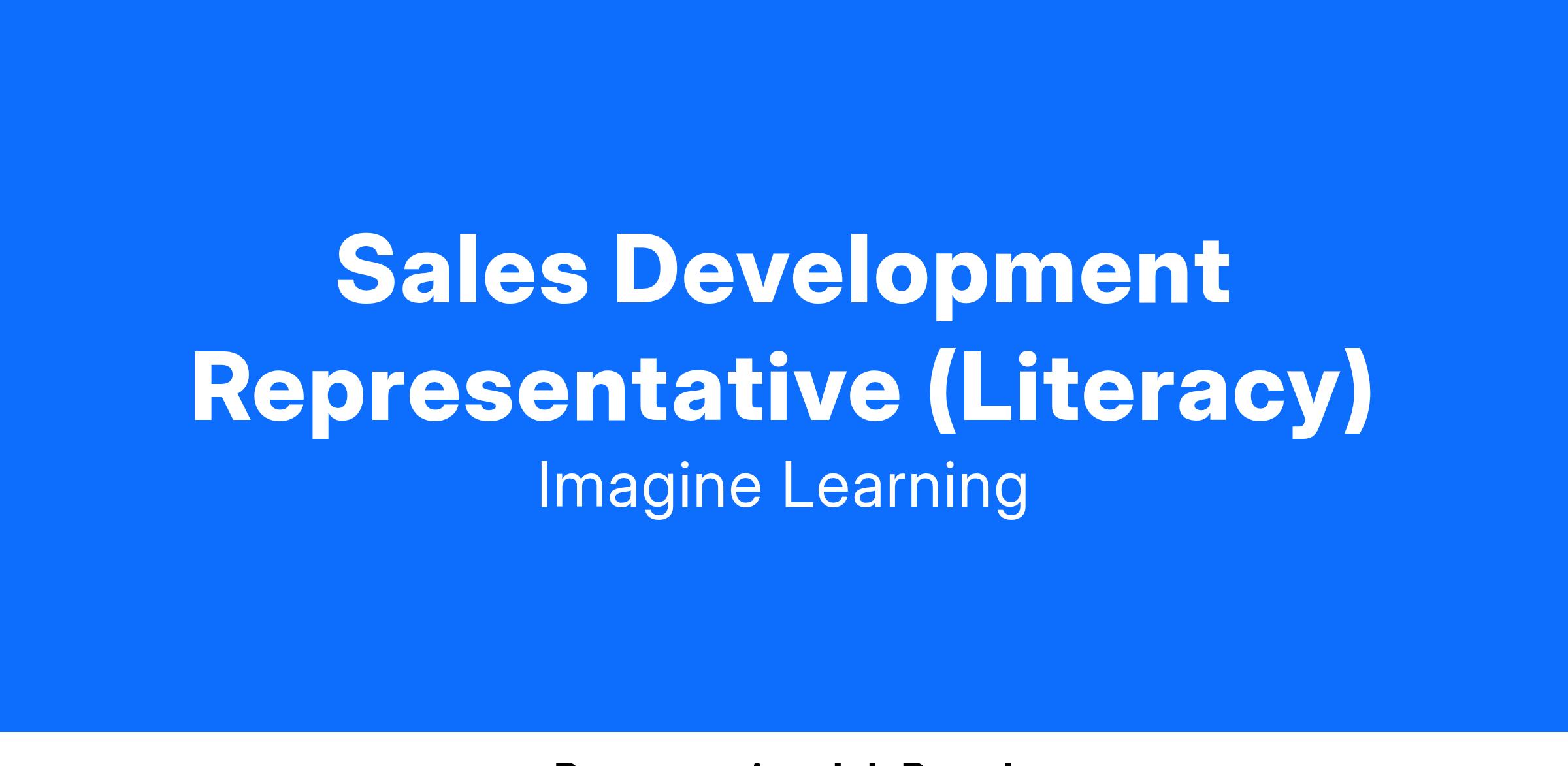 Imagine Learning Sales Development Representatives (Literacy) are industry-experienced and undergo full sales and product training. They ensure that a potential customer's initial interaction with our company is positive and well-informed. Industry studies have shown that responding to customer inquiries within an hour gives a 37% better chance of meaningful interaction, the Imagine Learning Sales Development Representative will typically call within minutes of a customer filling out a form requesting contact. The Sales Development Representative role carries a quarterly bonus for those that successfully hit certain required metrics.