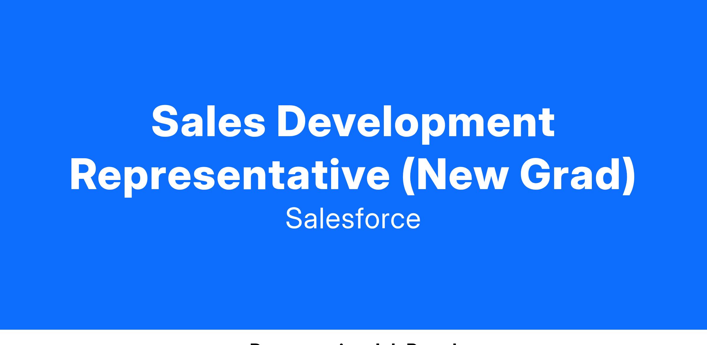 Are you looking for a fulfilling career empowering companies to connect with their customers in a whole new way? As a Sales Development Representative, you will join our elite sales team and do just that! You will learn how to evangelize Salesforce, the Customer Success Platform and World’s #1 CRM, by researching and identifying net-new business opportunities — you will have a direct impact in our revenue generation goals. This role is an exciting opportunity for you to develop your core sales skills and business acumen as you work alongside industry sales leaders.