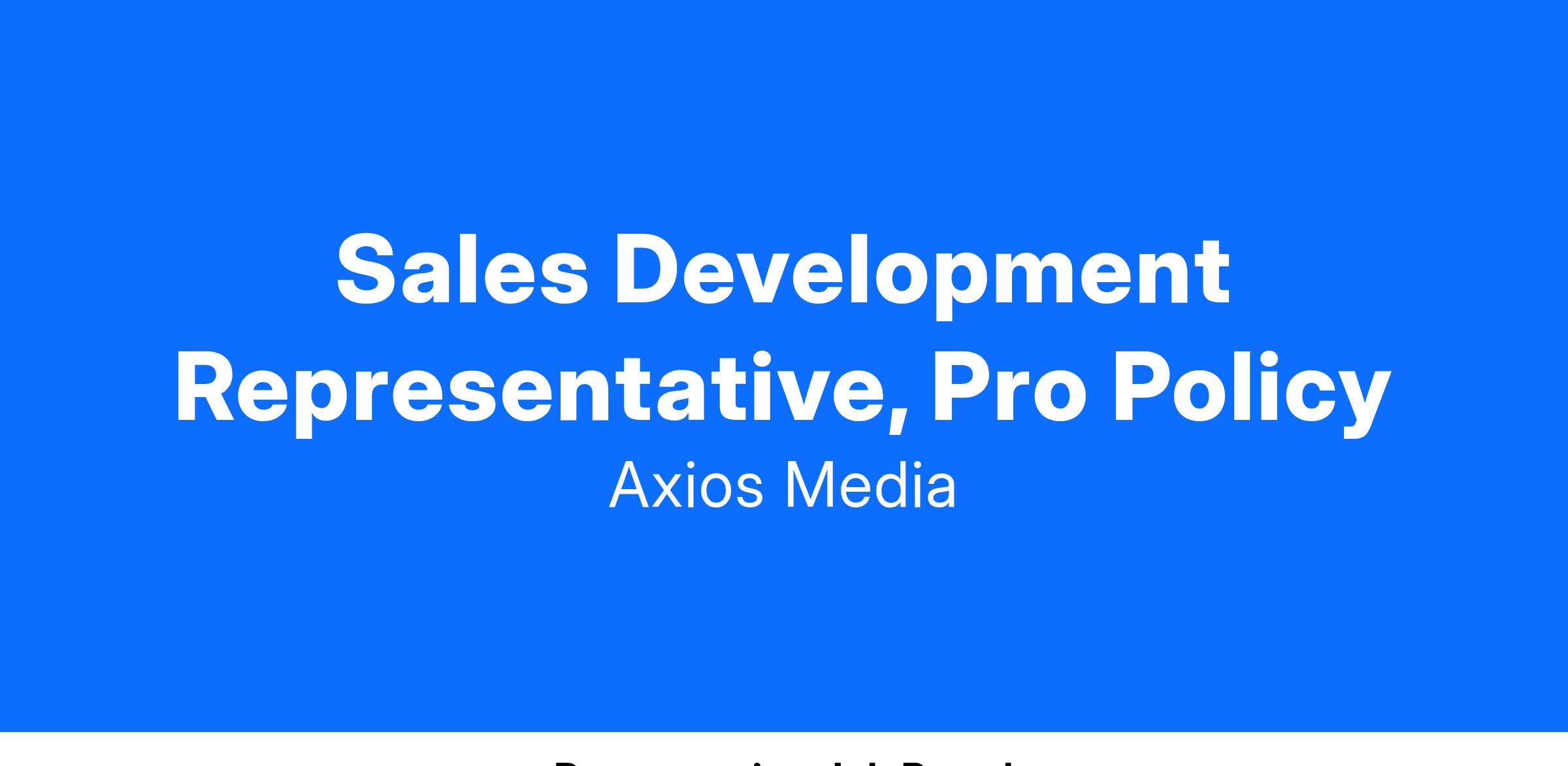 The big picture: Axios is a media company dedicated to providing trustworthy, award-winning news content in an audience-first format. We are looking for a SDR to join our Axios Pro Policy sales team!