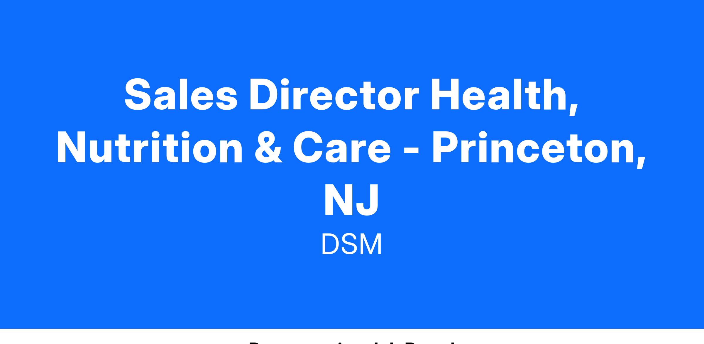 Sales Director Health, Nutrition & Care – Princeton, NJ