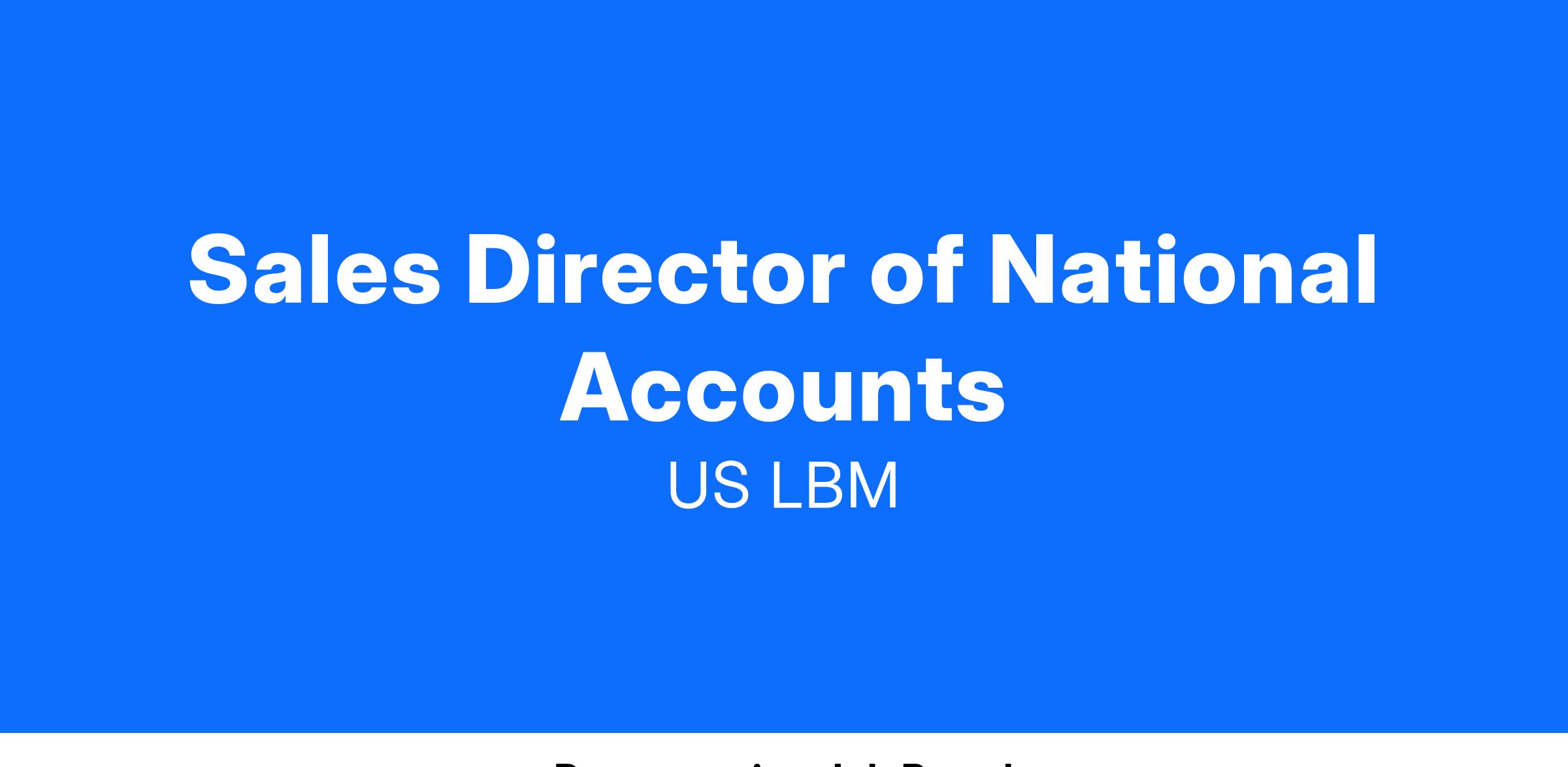 The US LBM Director of National Accounts will lead the company's efforts to maintain and expand relationships with large, National and Regional customers. This person will be responsible for developing and executing strategy for strategic accounts in conjunction with Regional Sales Leadership and the markets. The Director of National Accounts represents the entire range of company products and services, while leading the customer account planning cycle and ensuring assigned customers' needs and expectations are met by the company.