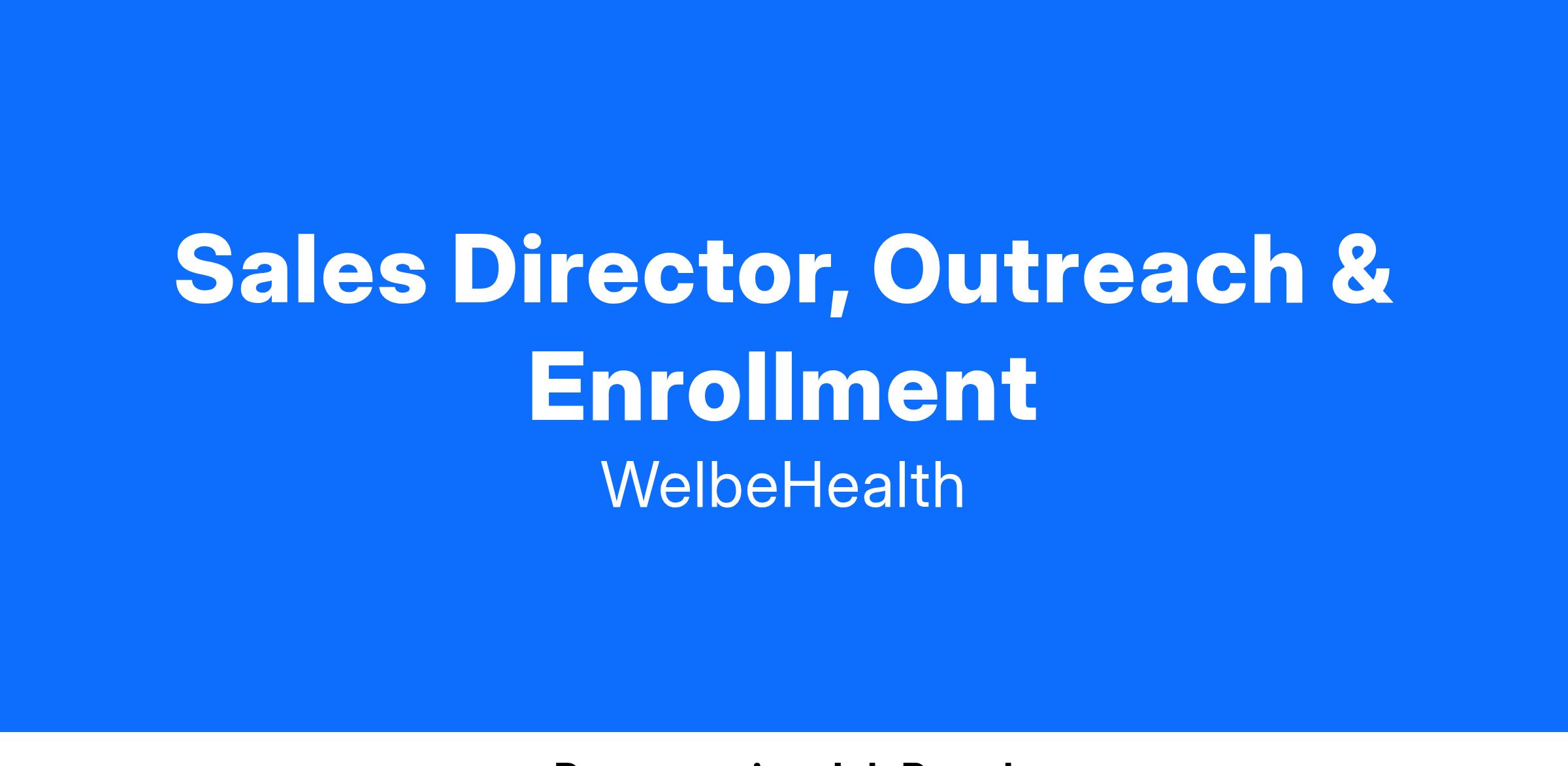 As a member of the leadership team, the Marketing Outreach & Enrollment Director guides the WelbeHealth Outreach and Enrollment Team, and facilitates collaborative relationships across WelbeHealth, with the interdisciplinary team (IDT), and with external stakeholders to promote WelbeHealth’s values, culture, and mission.