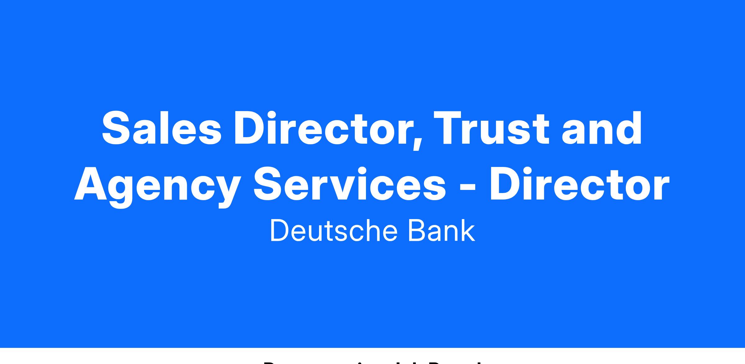 Deutsche Bank is looking for an experienced business development professional to join its Sales Team as a Sales Director in Trust and Agency Services within the Corporate Bank. You will focus on covering a wide range of trust, agency, escrow, and related services provided to the capital markets. In this capacity, you will build strong working relationships at a senior management level across business divisions, and with clients across industry sectors focusing on three main areas: Leadership, Client and Relationship Management and Deal Execution.