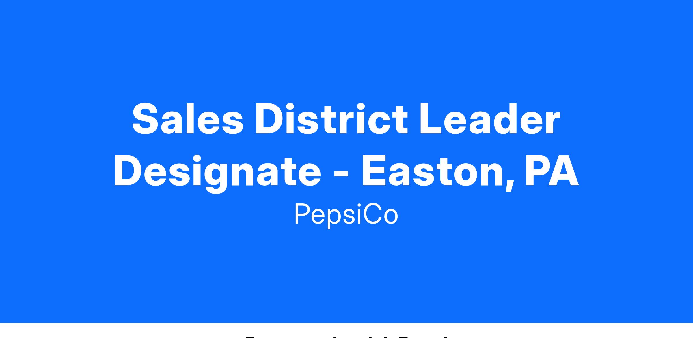 Sales District Leader Designate - Easton, PA