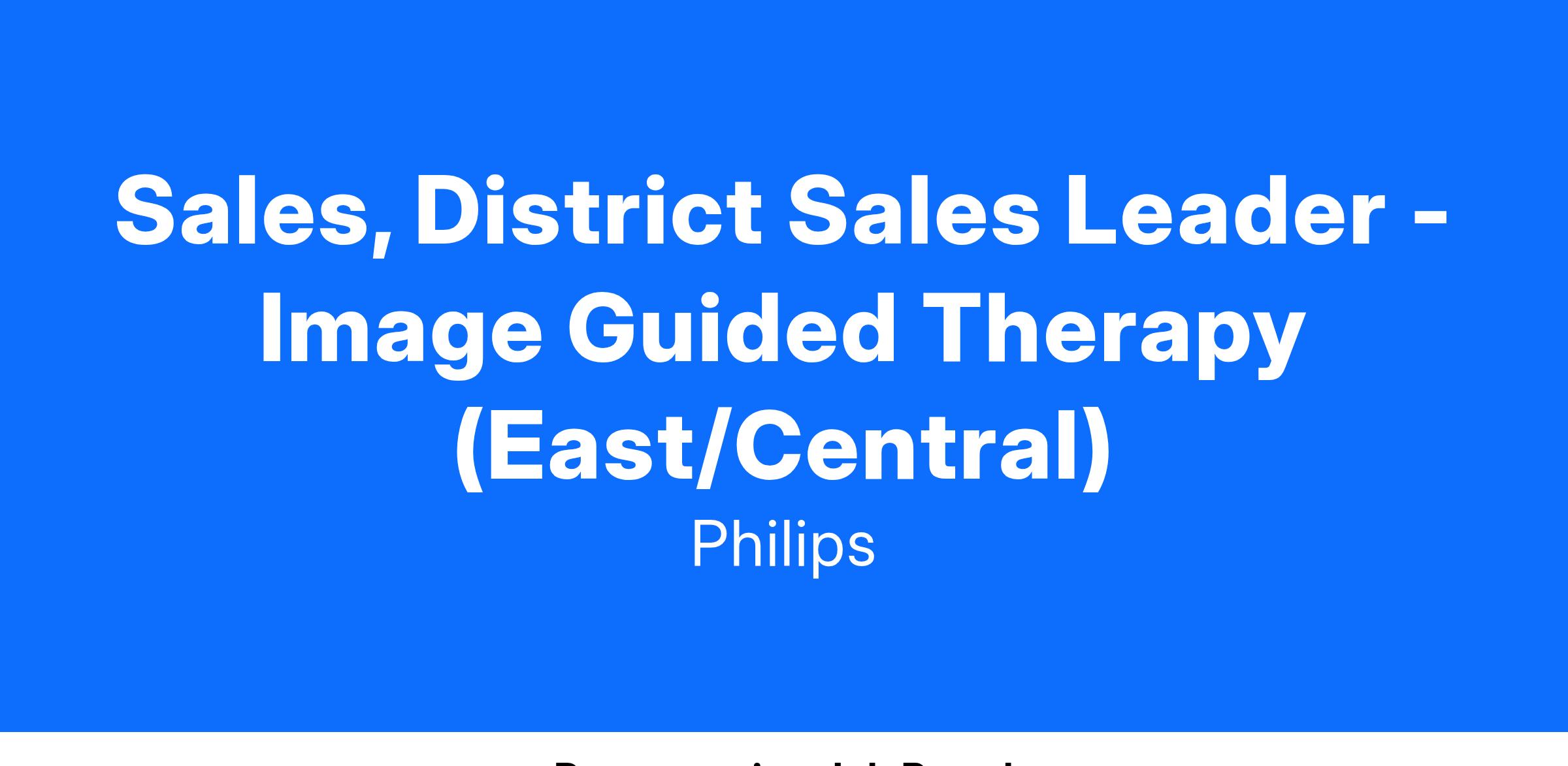 The IGT District Sales Leader will lead all go to market activities in their district, including business planning, and strategic downstream activities for this space. This includes both sales, system implementation, and managing existing installed base customers. The focus is on obtaining OIT, Revenue and margin objectives. You will closely collaborate with various Philips Business functions, and NAR commercial leaders to cultivate sales of integrated solutions and large-scale projects. It is critical that you spend considerable time in the market with critical customers, key opinion leaders, and potential partners.