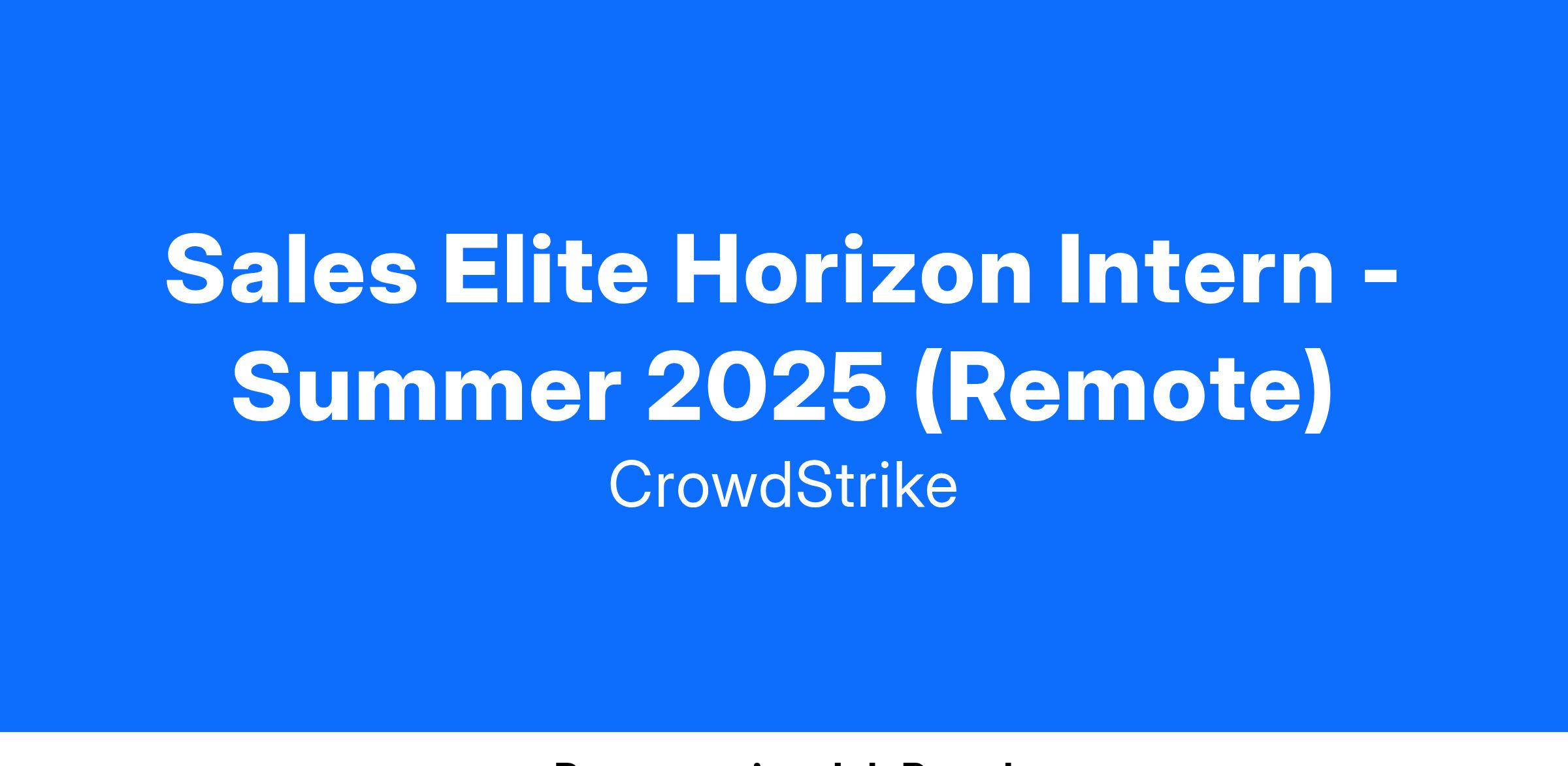 Our Global Sales Excellence Horizon Internship is dedicated to elevating the next generation of talent in our fight against adversaries with a structured curriculum, certifications, and an engaging environment. As a Sales Elite Horizon Intern, you will spend eight weeks in our competitive and immersive sales program gaining hands-on experience while working side by side with top industry professionals. You will take part in the full sales cycle which accelerates company and individual growth – all while earning your CrowdStrike Sales MBA in our solutions, processes, and culture!