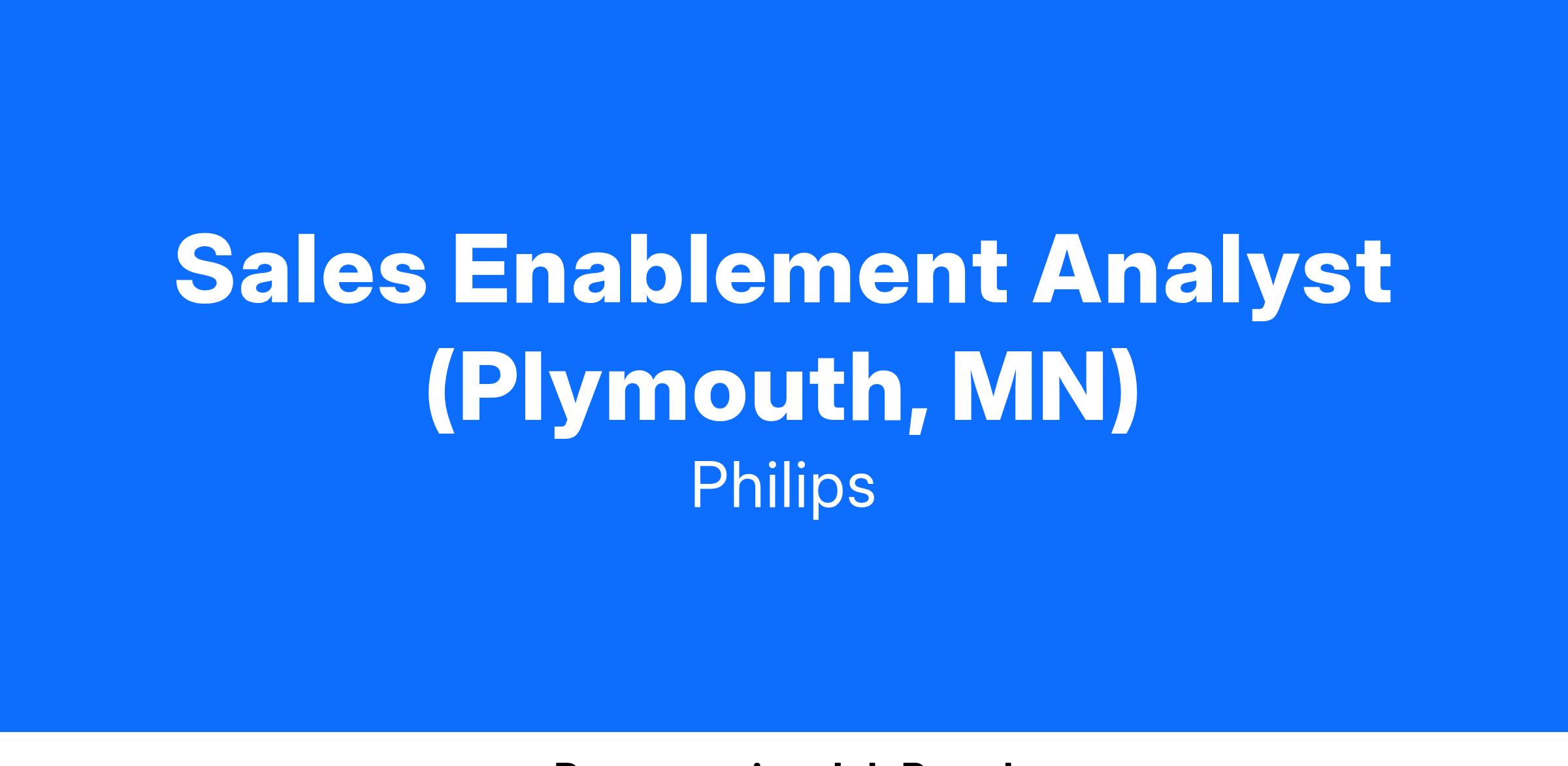 At Philips, the Sales Enablement Analyst tackles challenges and solves them using a methodical approach, delivering quality results through detail-oriented project management. They deliver data insights and perform analyses through methodical and rigorous quality control processes in their day to day activities to ensure 100% accurate support to the sales team. They enjoy working with multiple teams to connect business strategy and execution and their in-depth knowledge of business processes makes them a trusted advisor in the Inage-Guided Therapy Devices segment.