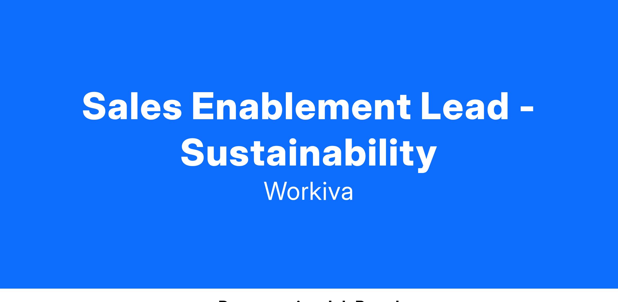 Workiva is looking for a Sales Enablement Lead for Sustainability that is experienced in selling to economic buyers across corporate segments and industries across the globe. The Sustainability Lead will be a collaborative partner with Sales Leadership, Analyst Relations, Industry Experts, Product Marketing and Product Management, to ensure Workiva Sales Leadership and sellers are prepared for business conversations with companies facing sustainability reporting issues.