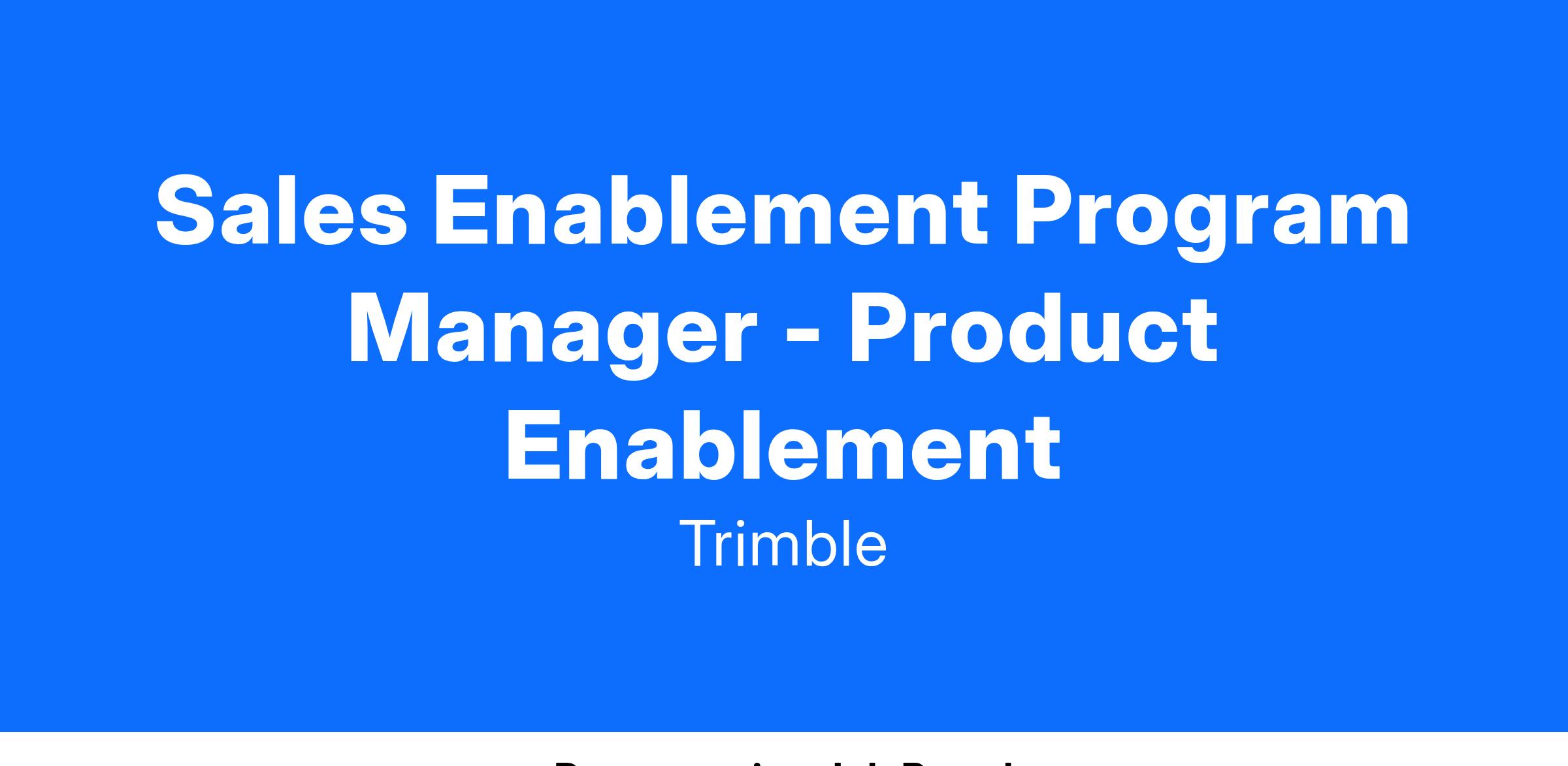 Title: Sales Enablement Program Manager - Product Enablement