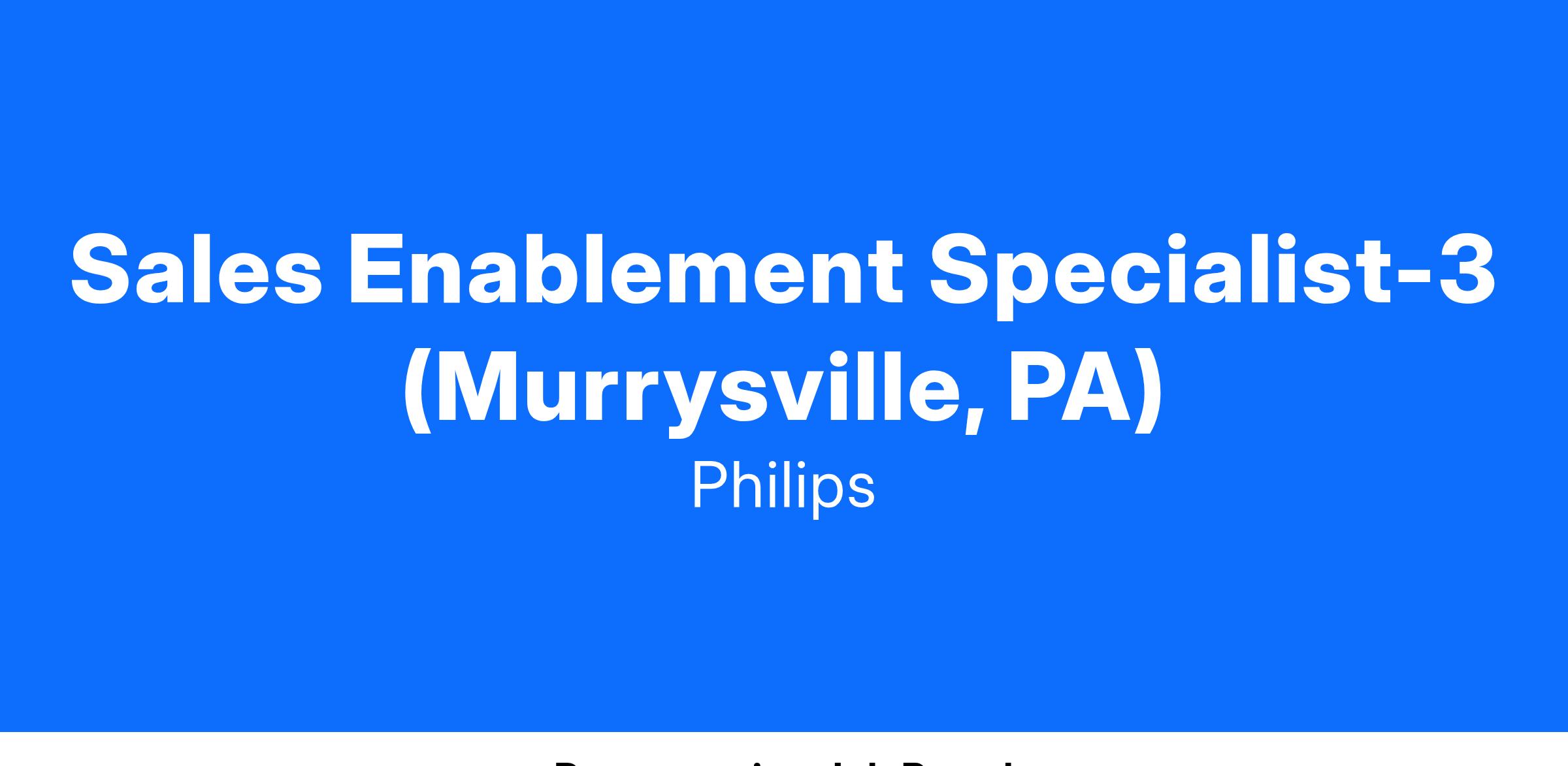 Sales Enablement Specialist (Murrysville, PA)