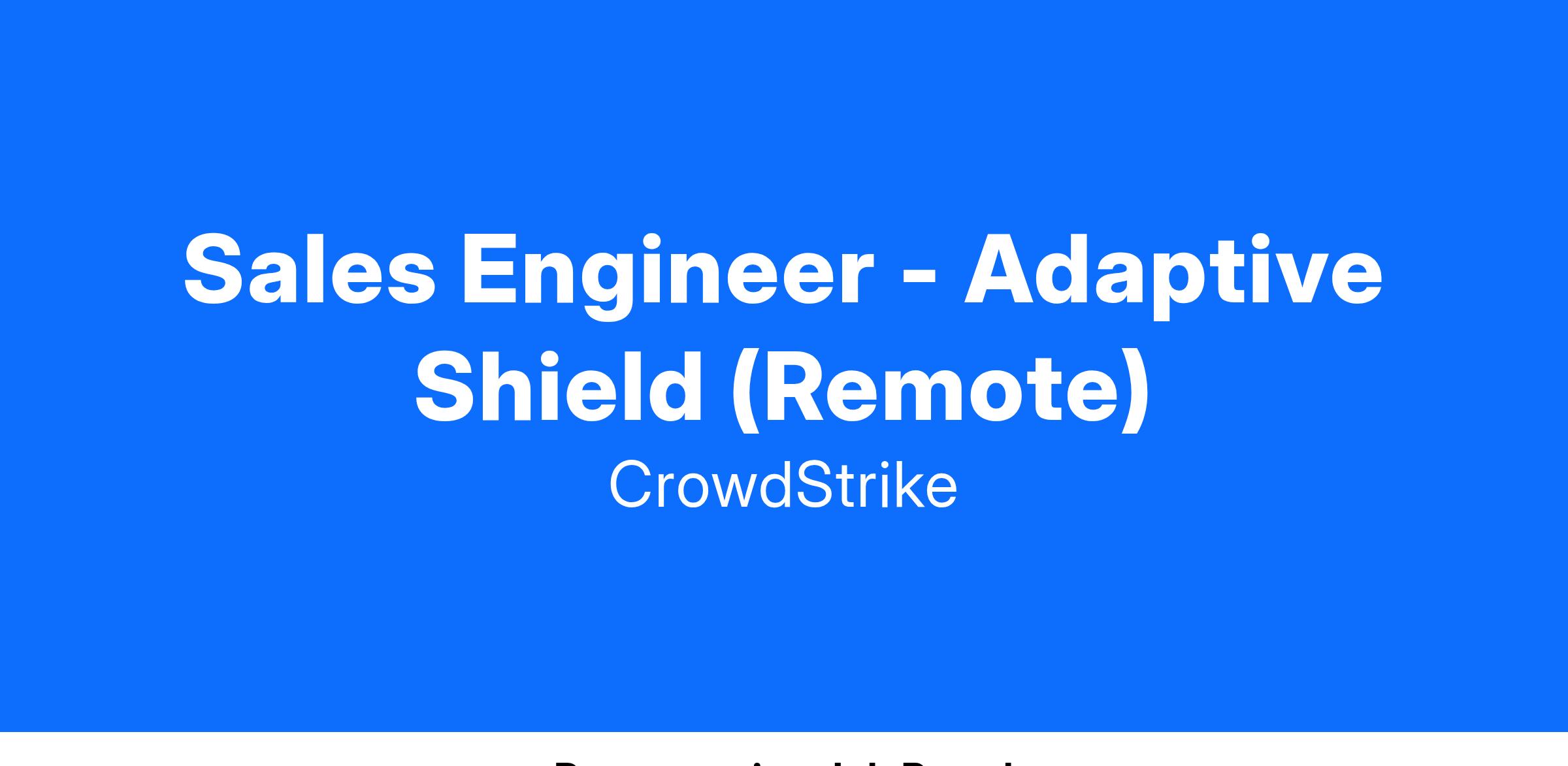 Adaptive Shield, a CrowdStrike company, is a leading provider of SSPM solutions that enables security teams to stay on top of their organization's; apps, identities, and any unusual behavior in their SaaS ecosystem. Today it is transforming how CrowdStrike’s Falcon protects our customers. That’s why we’re not just looking for candidates with impressive resumes; we’re seeking pioneers. We’re on a quest to enrich our team with individuals who bring more than just expertise - we want trailblazers who have navigated the realms we’re venturing into. Your experience in this new field won't just be valued; it will be the cornerstone of our journey towards innovation.At the core of this is our people. It’s important to inspire, support, and enable one another, so we've chosen a diverse group of talented, compassionate, and fun people to work with. The work is challenging but also allows for great flexibility to prioritize off-work commitments. We’ve found this to be the perfect mix for us. If you see yourself as a great match, we’d love nothing more than for you to join us at the forefront of innovation as our new Sales Engineer!
