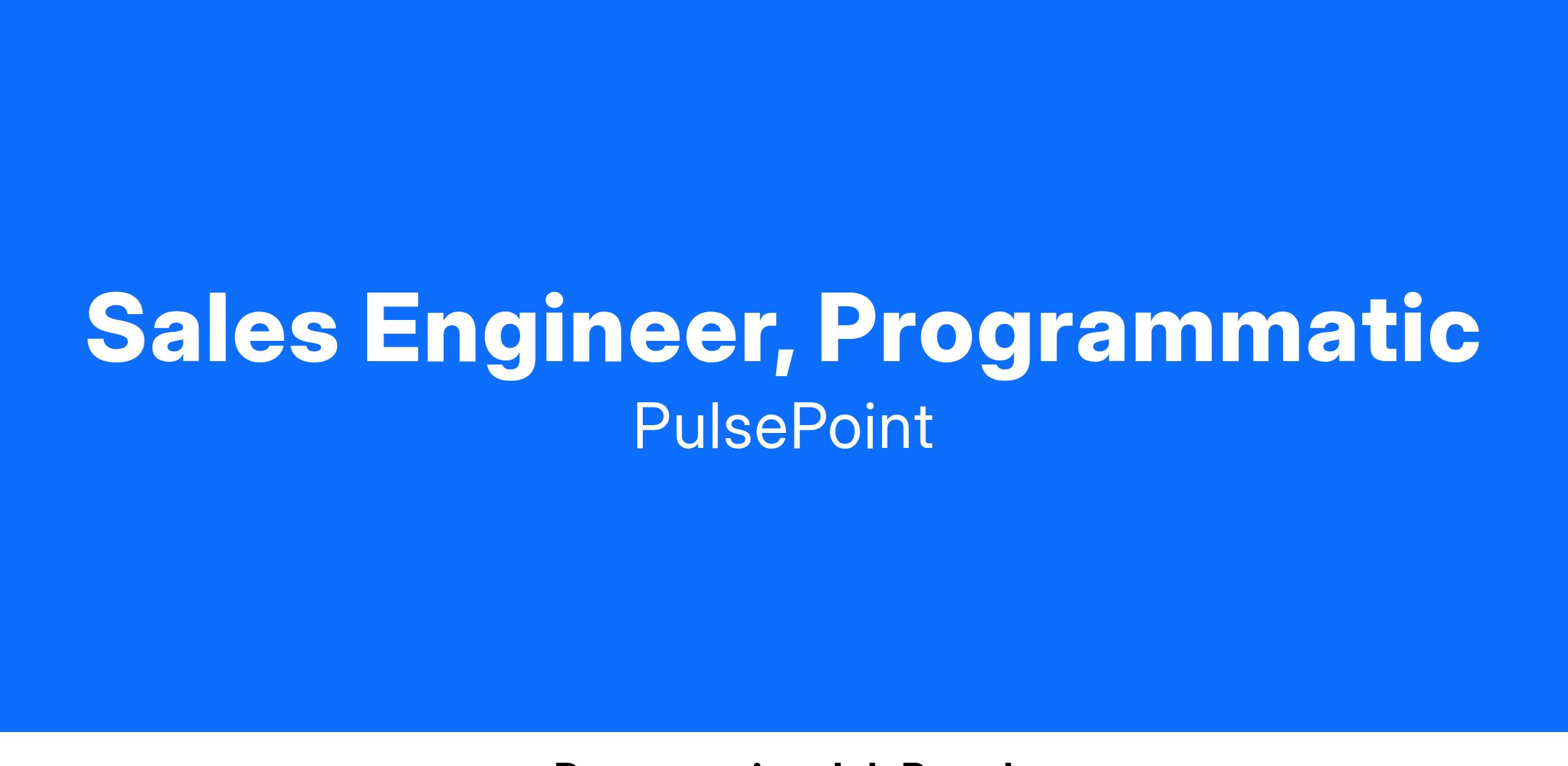 PulsePoint is looking for a seasoned, hardworking, smart, and overachieving Sales Engineer with proven experience and a passion for translating technical solutions at an executive level to non-technical stakeholders.