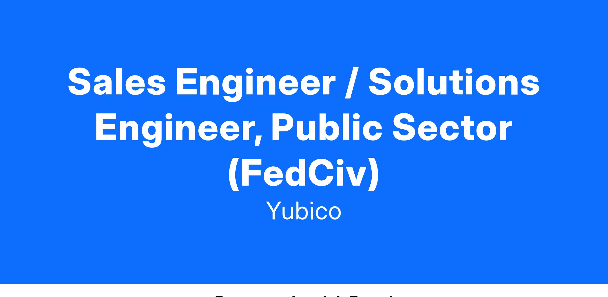 We are looking for a talented Solutions Engineer to join the security revolution! In this role you will play a critical role in establishing technical credibility and confidence with our prospective clients leveraging your experience and drive to envision, position and sell Yubico’s products to government organizations. You will work closely with sales reps and channel partners to define and communicate how we can best achieve our customers goals with Yubico solutions.