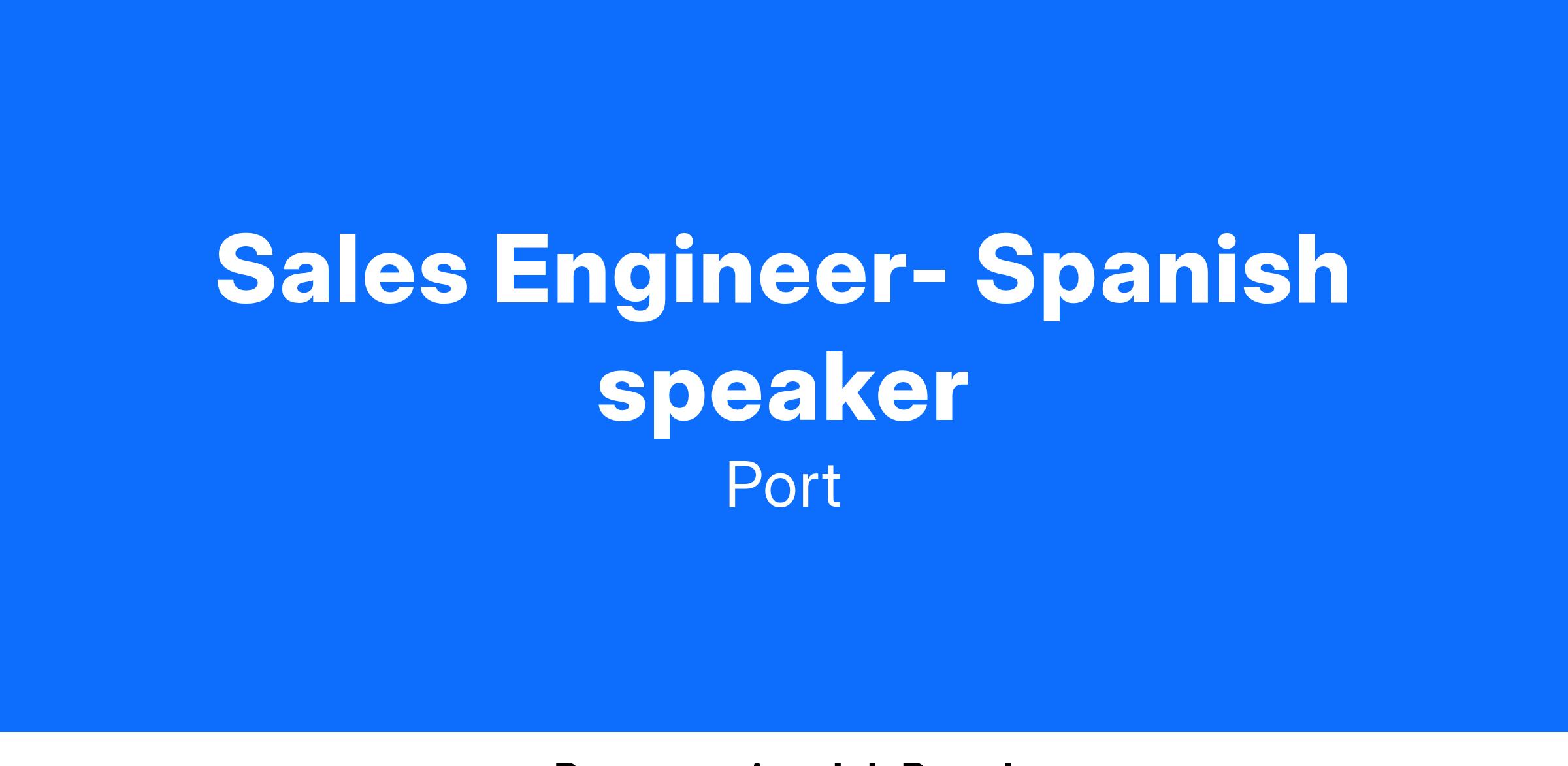 Sales Engineer- Spanish speaker