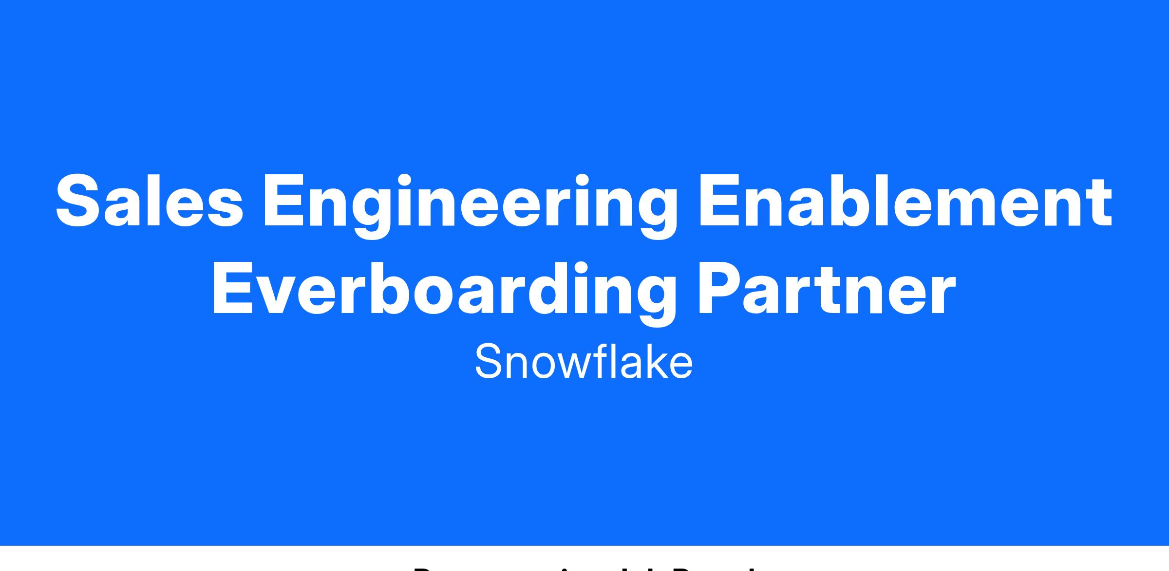 Snowflake is actively seeking a Sales Engineering Enablement Everboarding Partner to support our growing team. Reporting to the SE Enablement Manager, you will play a key role in creating and implementing our SE enablement strategy.