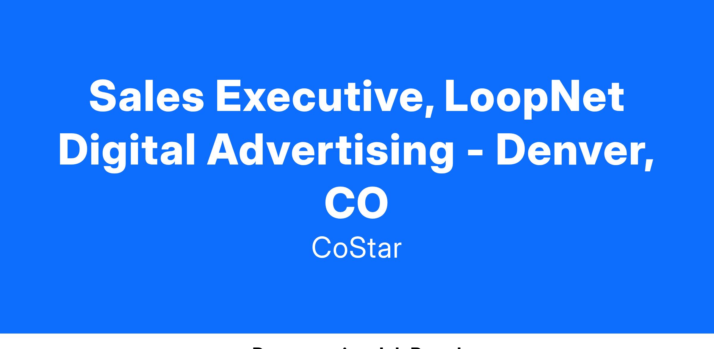 As a Sales Executive with LoopNet you will be part of a growth-oriented, innovative company and represent the industry’s most sophisticated digital advertising and marketing solutions. You will partner with the world’s top owners and brokers to develop a comprehensive digital marketing strategy to showcase and differentiate their portfolio of properties online. Key to your success will be your ability to build long-lasting, service-focused, customer relationships. You will achieve this in part by advising on product frequency, reach and brand efficacy and highlighting return on investment using our proprietary analytic tools and reporting capabilities. Day to day, you will leverage CoStar Group’s deep knowledge and expertise in the Commercial Real Estate industry to build your client portfolio by prospecting, studying industry trends and news, and conducting effective product demonstrations.