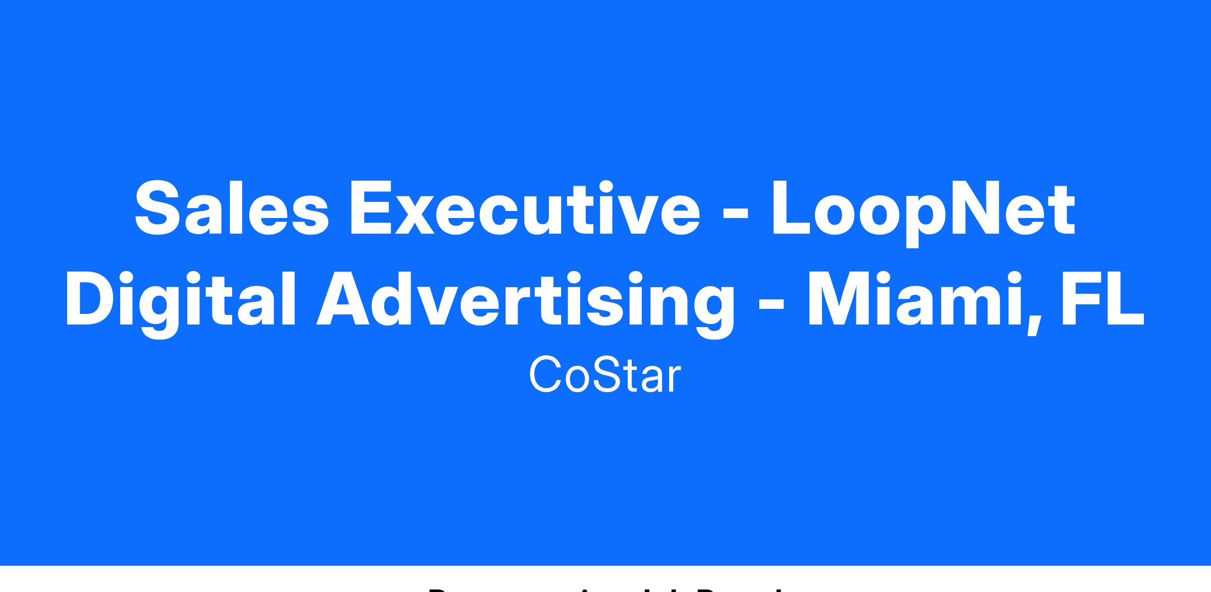 As a Sales Executive with LoopNet you will be part of a growth-oriented, innovative company and represent the industry’s most sophisticated digital advertising and marketing solutions. You will partner with the world’s top owners and brokers to develop a comprehensive digital marketing strategy to showcase and differentiate their portfolio of properties online. Key to your success will be your ability to build long-lasting, service-focused, customer relationships. You will achieve this in part by advising on product frequency, reach and brand efficacy and highlighting return on investment using our proprietary analytic tools and reporting capabilities. Day to day, you will leverage CoStar Group’s deep knowledge and expertise in the Commercial Real Estate industry to build your client portfolio by prospecting, studying industry trends and news, and conducting effective product demonstrations.