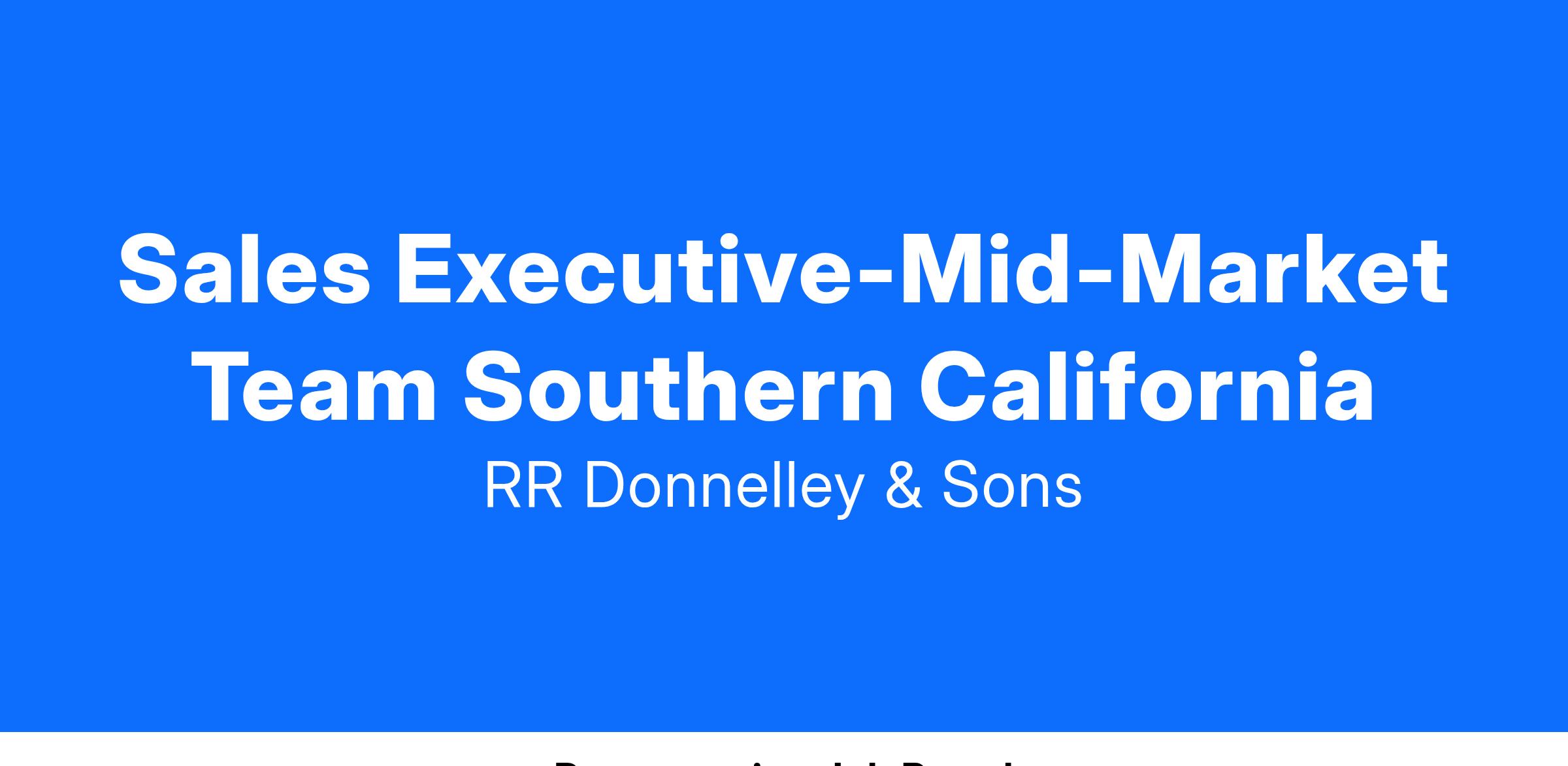 The Sales Executive is the principal representative of RRD responsible for