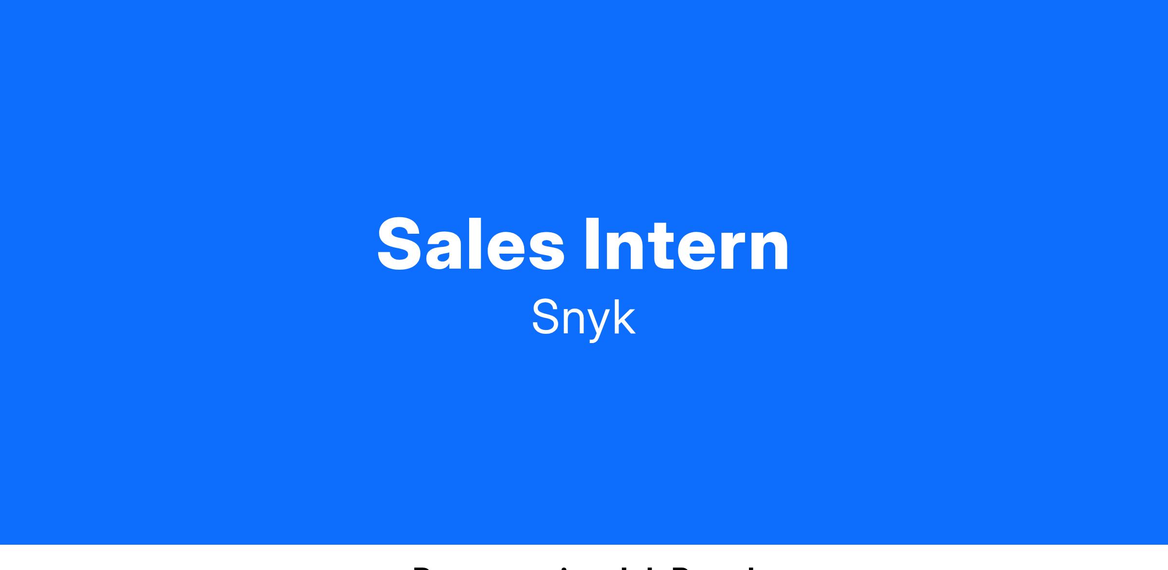 We’re looking for an ambitious, organized, and enterprising Summer Intern to join our Sales Development Representative (SDR) team! The SDR team at Snyk is responsible for generating new business opportunities through prospecting and qualifying leads. The mission of our SDR Team is to cultivate tomorrow’s leaders while generating net new business today.