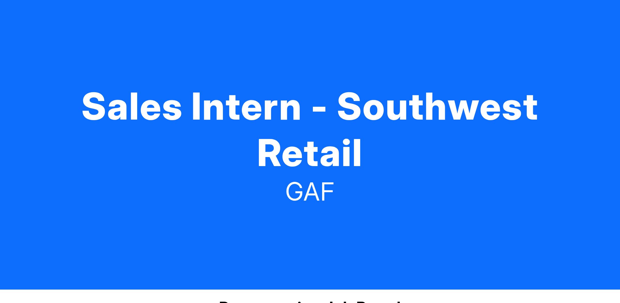 GAF is looking for a National Accounts Retail Sales Intern. The ideal candidate for this role is majoring in Business, Sales, Marketing, and Finance, and would be looking to consider a career in sales once they finish college. The intern would be assigned to one of our five managers and asked to do several specific projects related to the National Accounts Retail business.