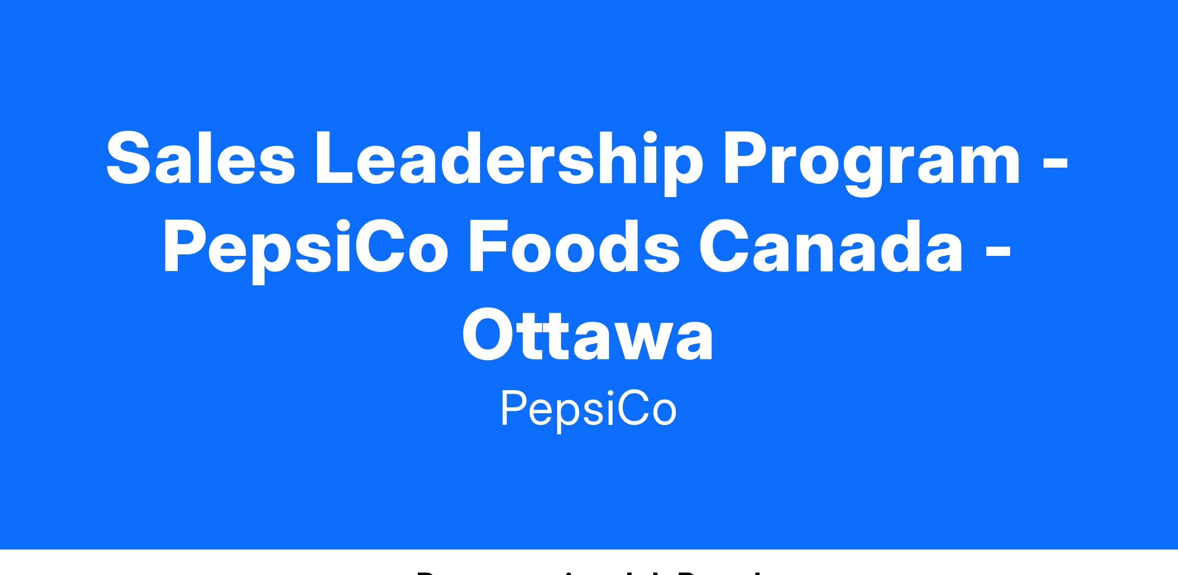 Sales Leadership Program - PepsiCo Foods Canada - Ottawa