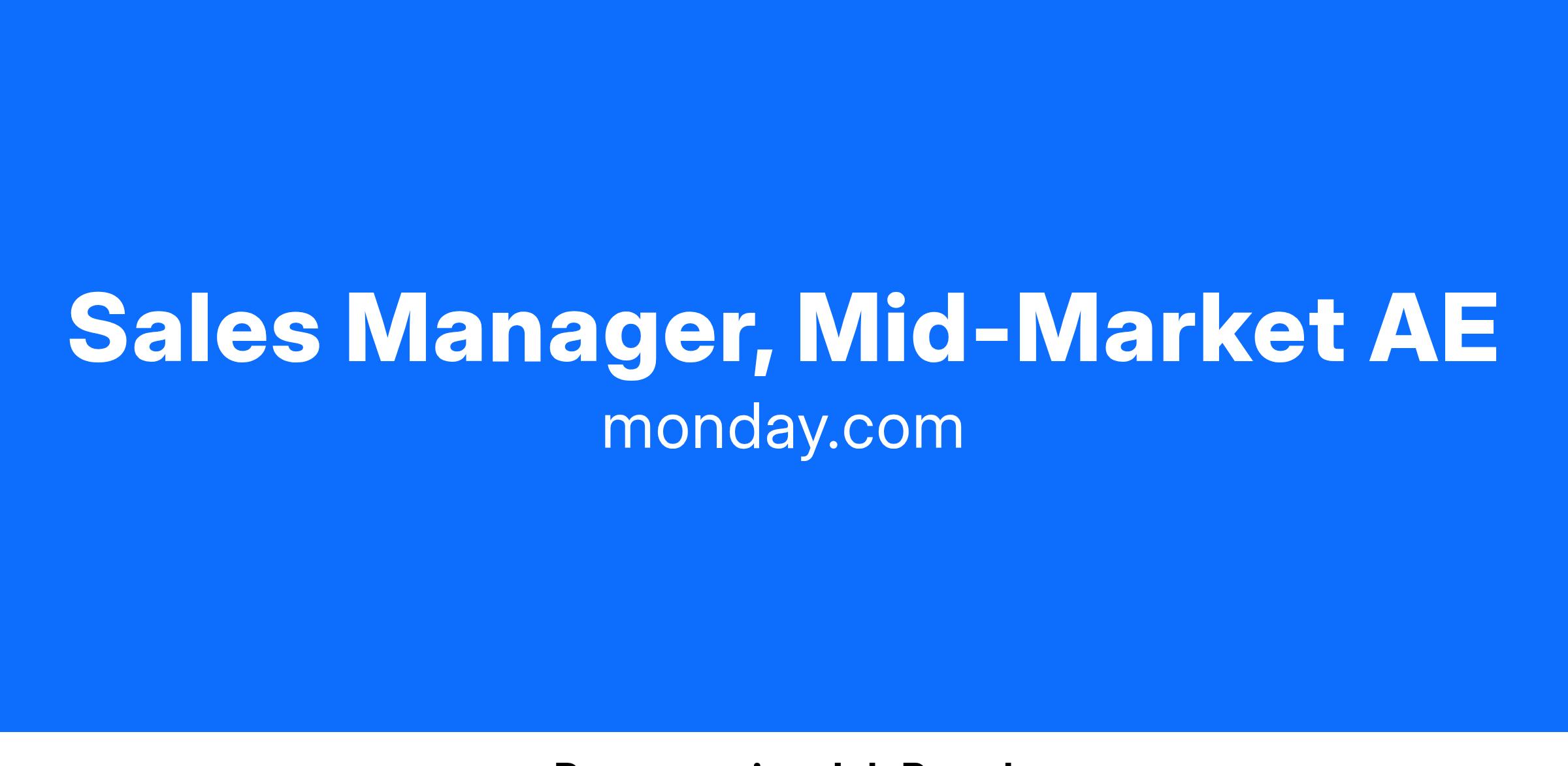 Our sales team is growing rapidly in Denver and we are looking for an experienced Sales Manager to oversee a group of Mid-Market Account Executives to help drive monday.com's success forward.