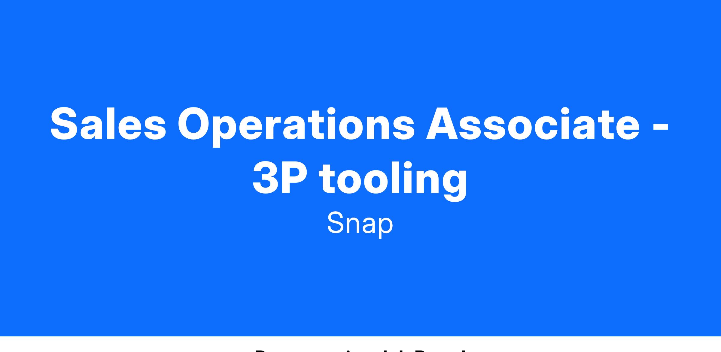 We’re looking for a Sales Operations Associate to join Snap in our New York City office! As a member of our Sales Technology Team you will help manage our suite of third-party sales tools. In this role, you will be responsible for overseeing our tooling budget, investigating new tools to address the evolving needs of our sales teams, coordinating renewals and the contract process, and partnering with finance to ensure purchase orders are correctly captured and processed. In this role you will work closely with Sales teams and their leadership, Legal, Finance, and product/engineering teams to ensure our sales team is maximizing the value of the tools we provide.