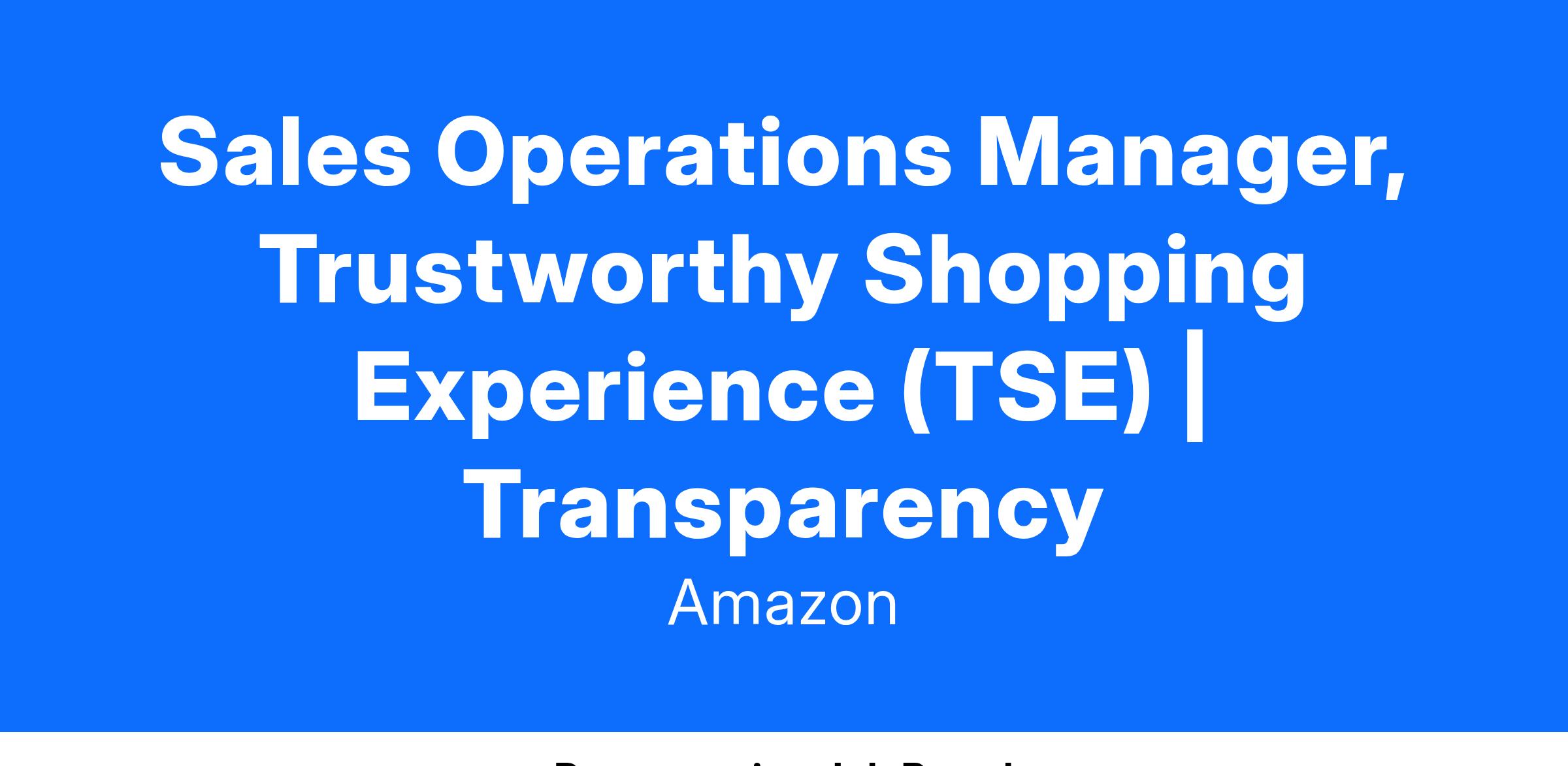 Amazon's Trustworthy Shopping Experience (TSE) team is looking for a Sales Operations Manager to work closely with cross-functional stakeholders to create, implement, and optimize processes, tools, and reporting that improve the overall efficiency and effectiveness our business development teams. The person in this role will act as a trusted advisor to our stakeholders, and become an extension of our business development efforts that translate into productivity toward goal attainment. This is a unique opportunity to play a highly visible role in an exciting and fast paced business, make history, and have fun!
