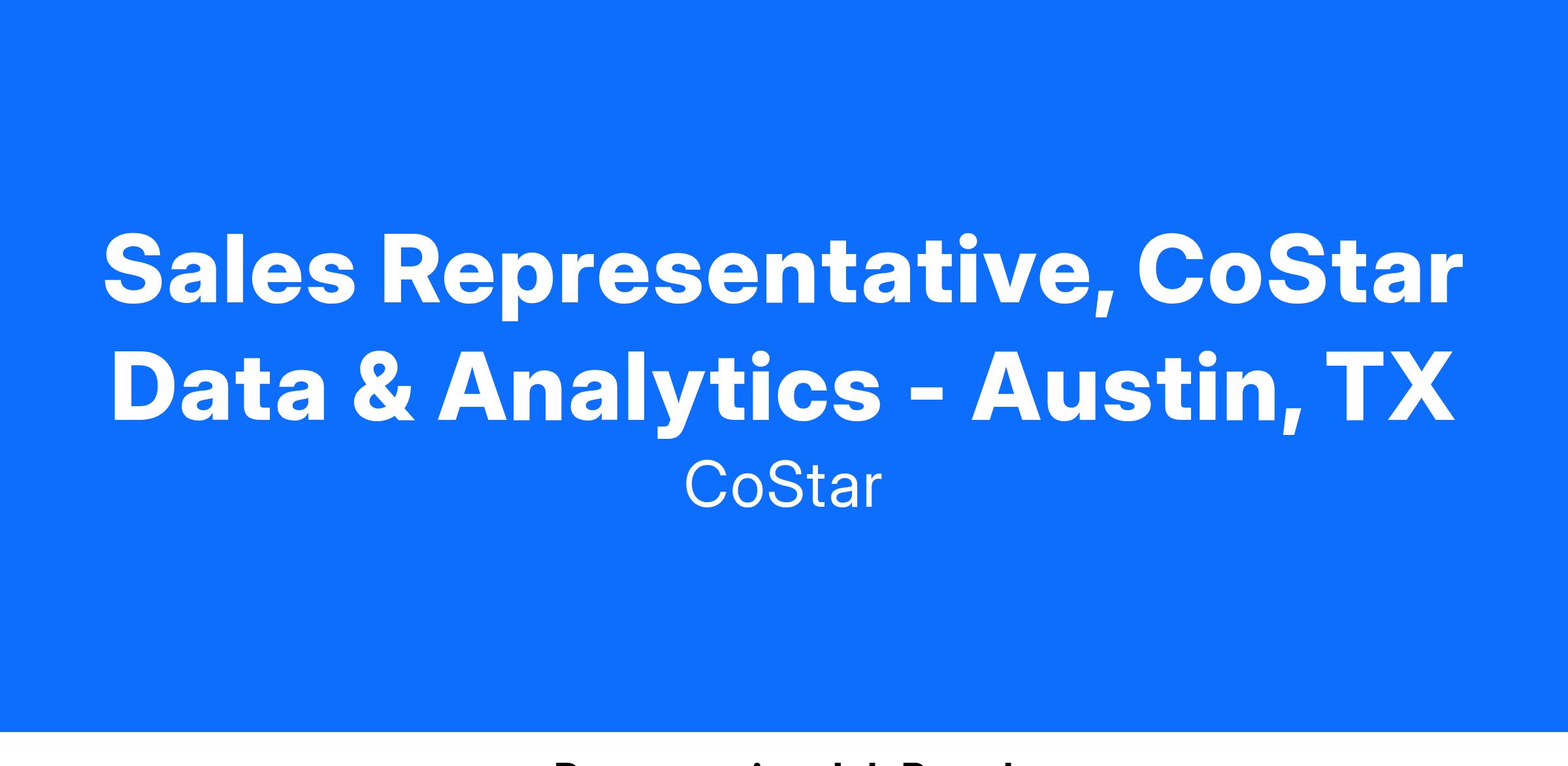 Sales Representative, CoStar Data & Analytics - Austin, TX