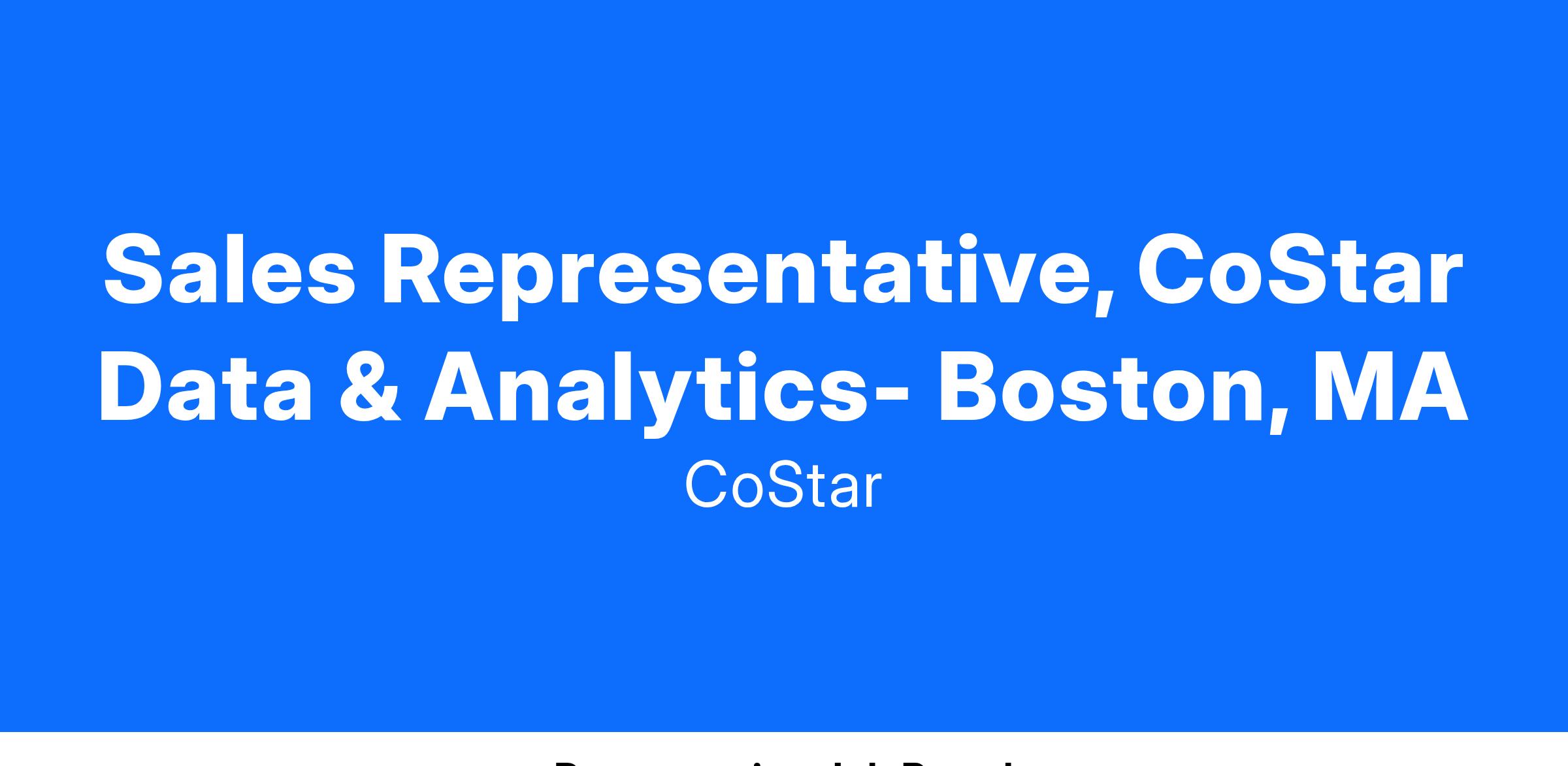 Fast to learn new concepts and apply them - CoStar clients and prospects are diverse and demanding. With a constantly evolving suite of products, successful Sales Associates are skilled at introducing them to their clients.