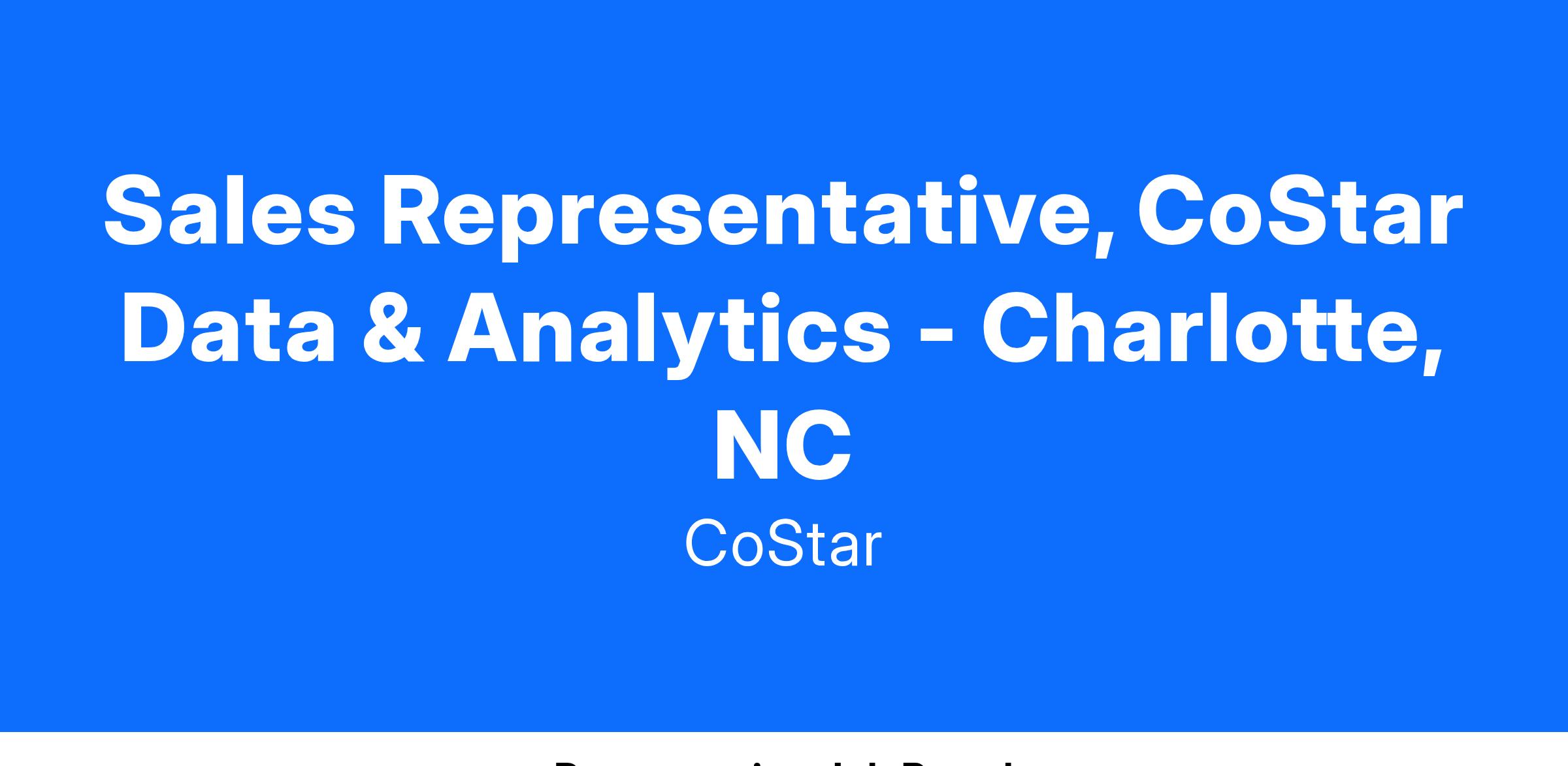 Sales Representative, CoStar Data & Analytics - Charlotte, NC