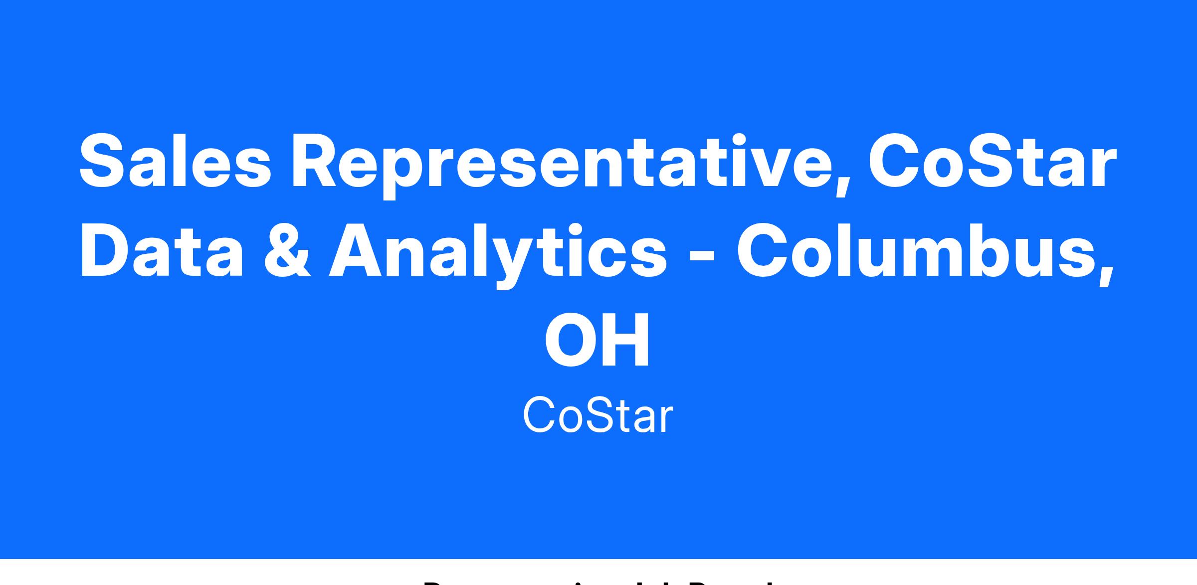Sales Representative, CoStar Data & Analytics - Columbus, OH