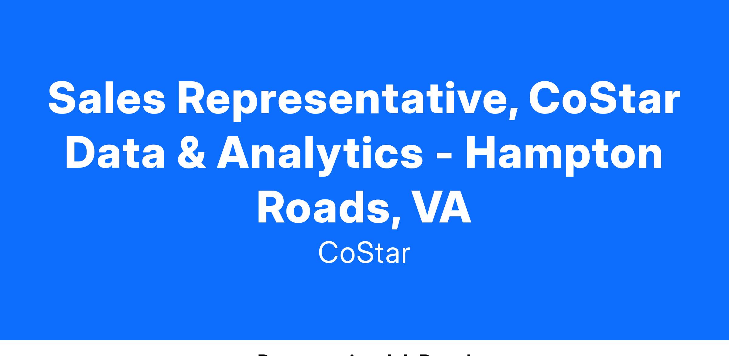 Sales Representative, CoStar Data & Analytics - Hampton Roads, VA
