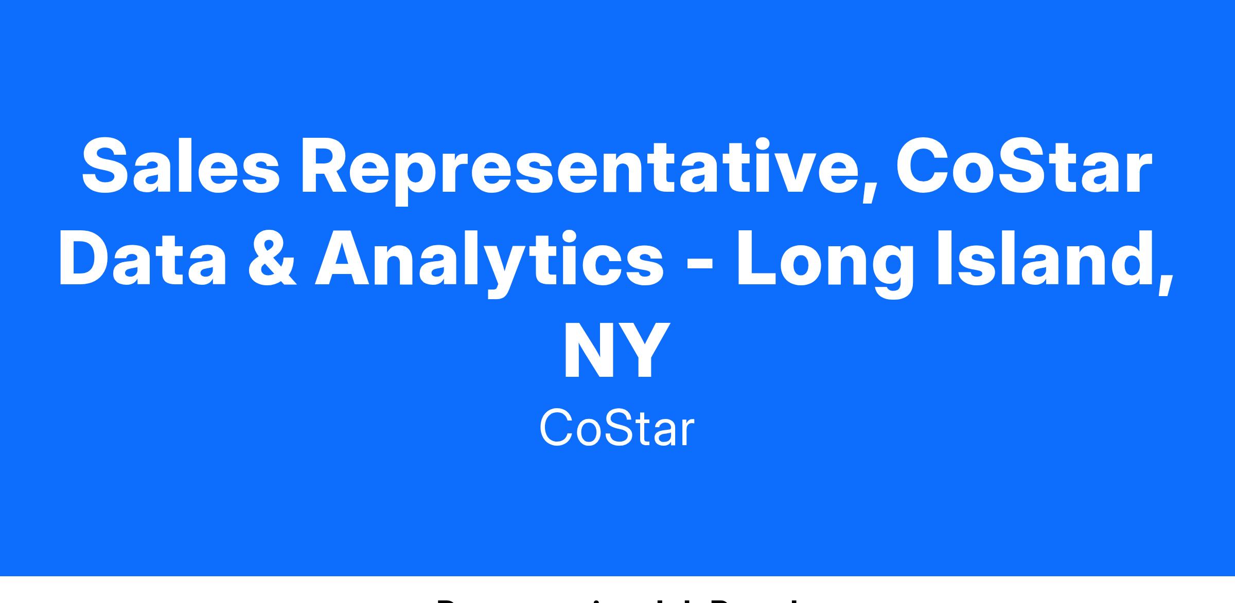 Fast to learn new concepts and apply them - CoStar clients and prospects are diverse and demanding. With a constantly evolving suite of products, successful Sales Associates are skilled at introducing them to their clients.